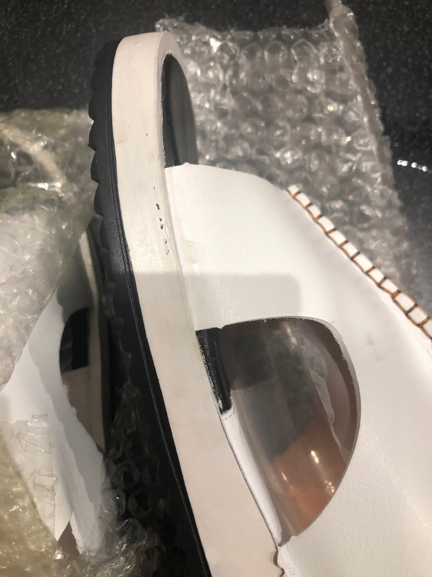 Получили сандалии , конечно это не кожа это факт, запах клеем ужасный, все видимые проклейки видно, думаю при носке запах выветреется.. на вид не плохие, как будут носится не знаем..размер точный, можно было и 43 заказать, не так страшно..с продавцом не общалась..