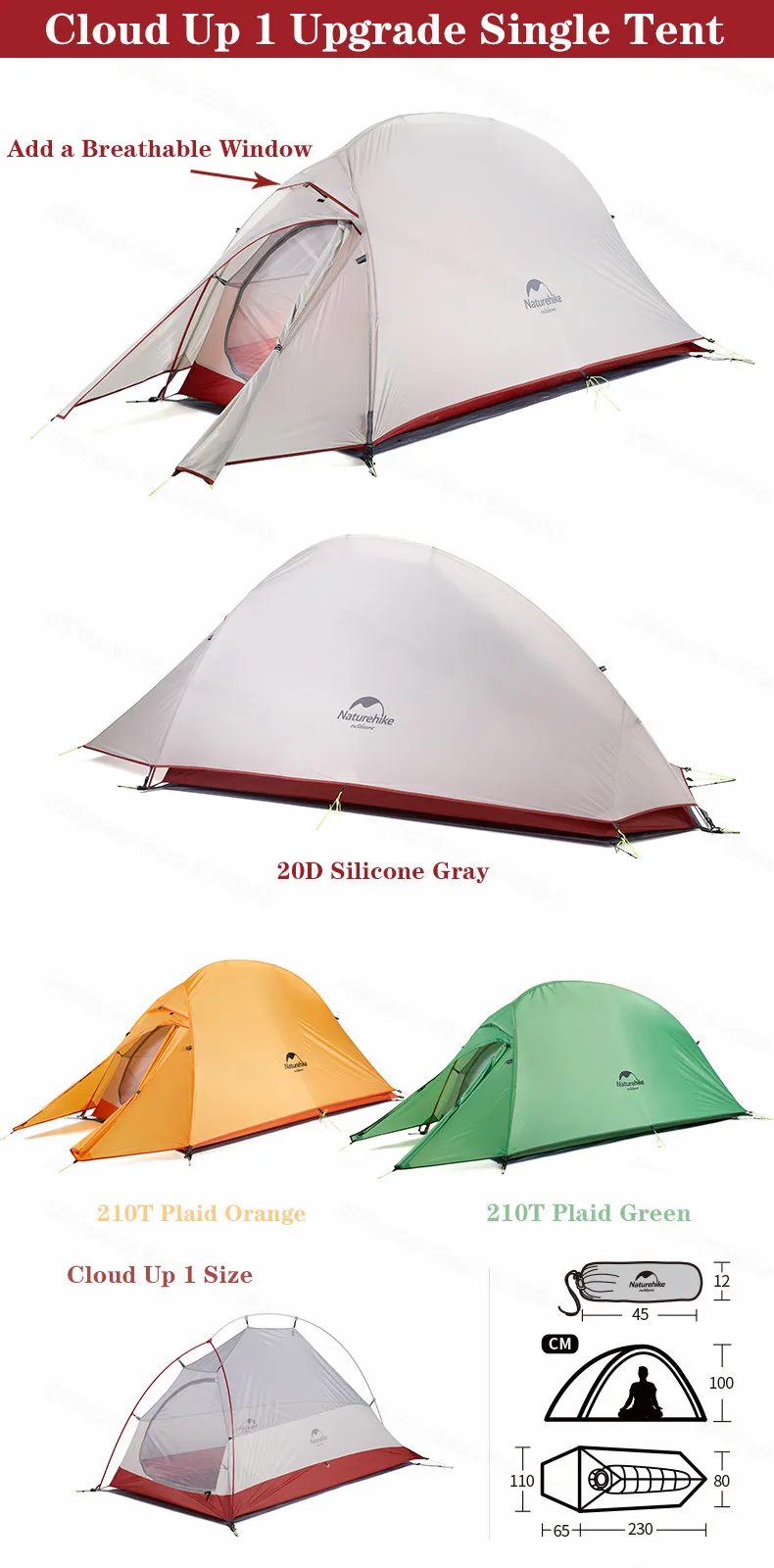 Naturehike модернизированная палатка для кемпинга с облаком на открытом воздухе для одиночного человека 20D210T Сверхлегкая палатка для путешествий, портативная походная палатка