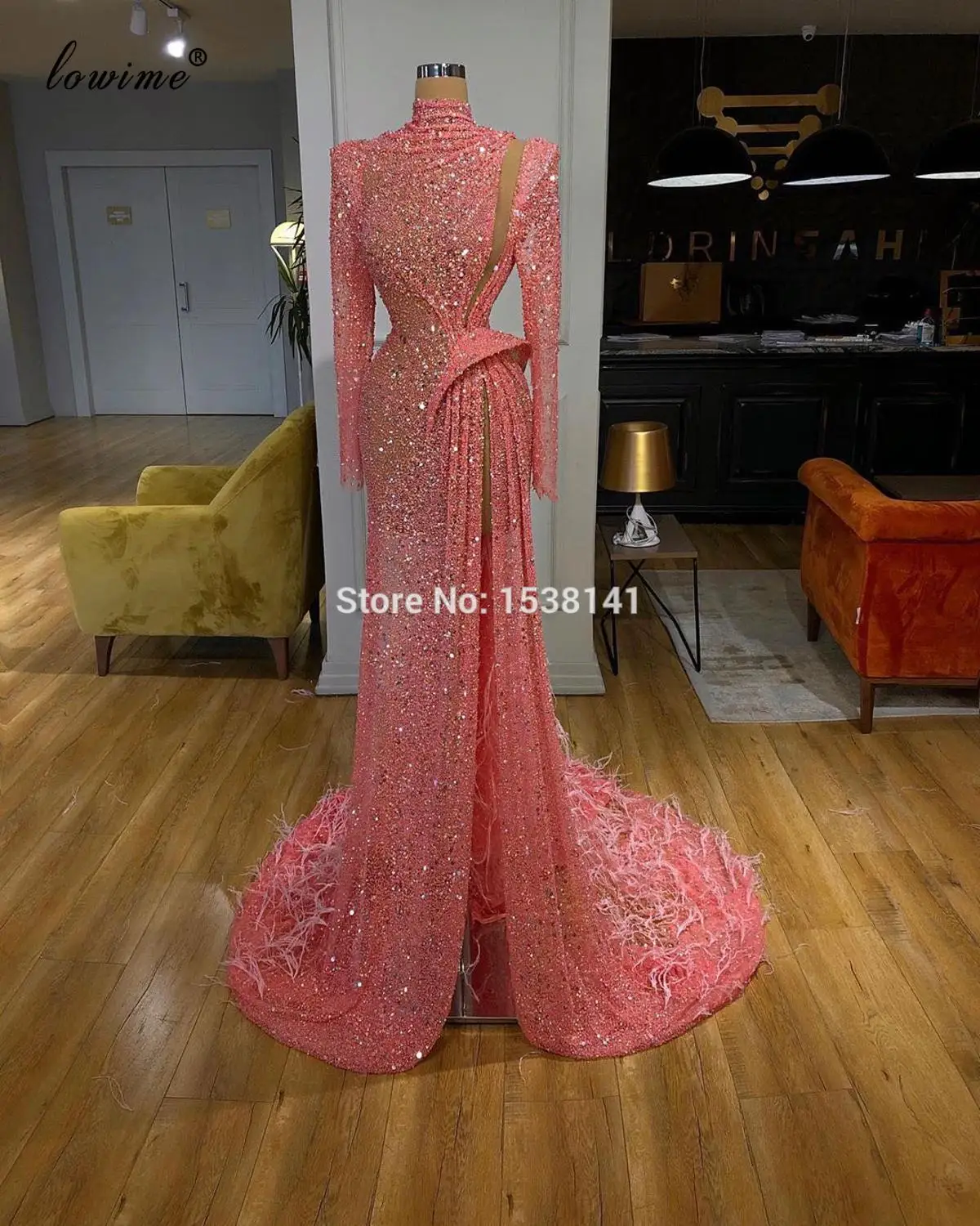 Модные элегантные вечерние платья 2020, мусульманские Официальные Вечерние платья с длинным рукавом, сексуальные женские платья для выпускного вечера с арабскими перьями