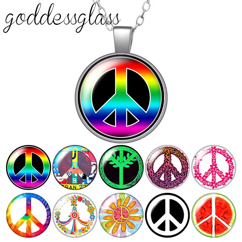 Красочные узоры Мира Символ мира и любви круглый стеклянный кабошон посеребренныйхрустальный кулон ожерелье ювелирные изделия для подарка
