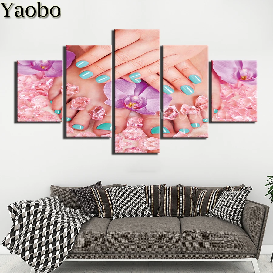 5 панелей, маникюрные картины, алмазная живопись, алмазная вышивка, полный квадратныйкруглый холст, картина-пазл для новогоднего подарка