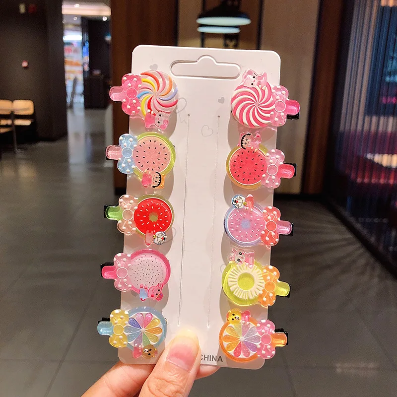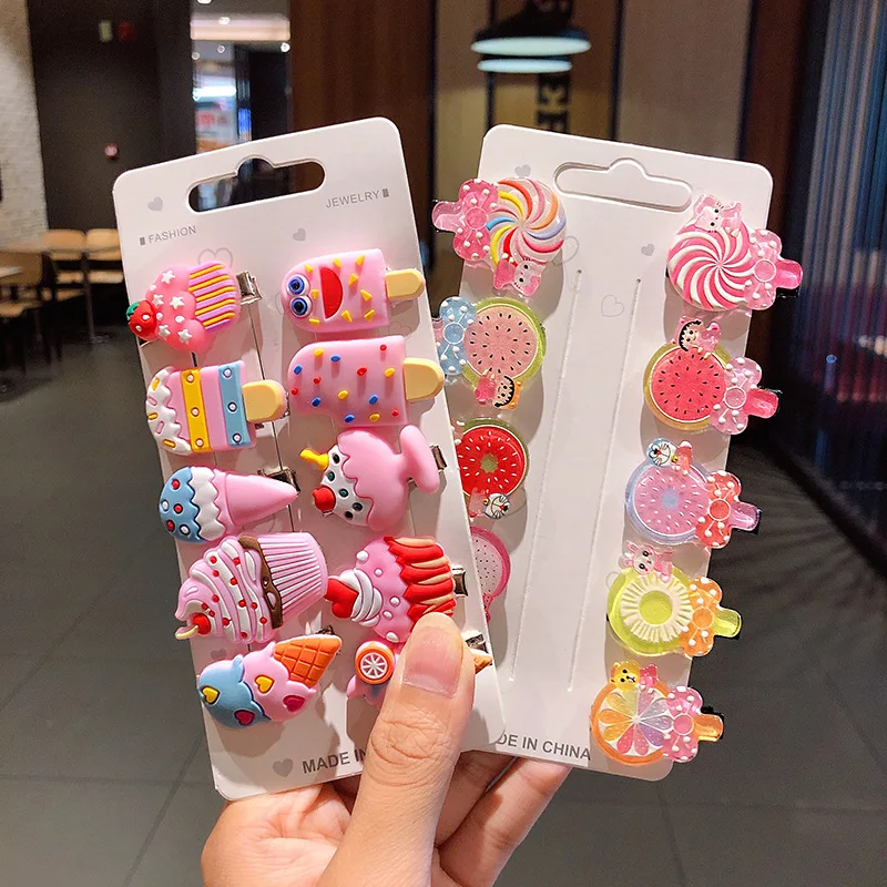 10 шт.компл. 2020 дети девушка заколки для волос комплект стильная футболка с изображением персонажей видеоигр мороженое фруктов заколки сладкий заколки повязка на голову, модные аксессуары для волос