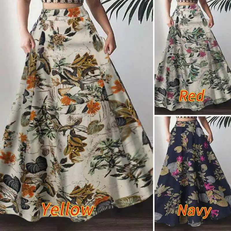 Женская юбка с принтом, длинный сарафан с высокой талией и цветочным принтом, весна 2021
