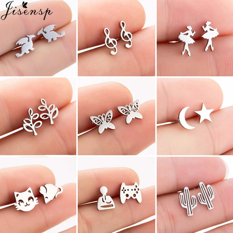 Серьги-гвоздики женские из нержавеющей стали, с бабочкой