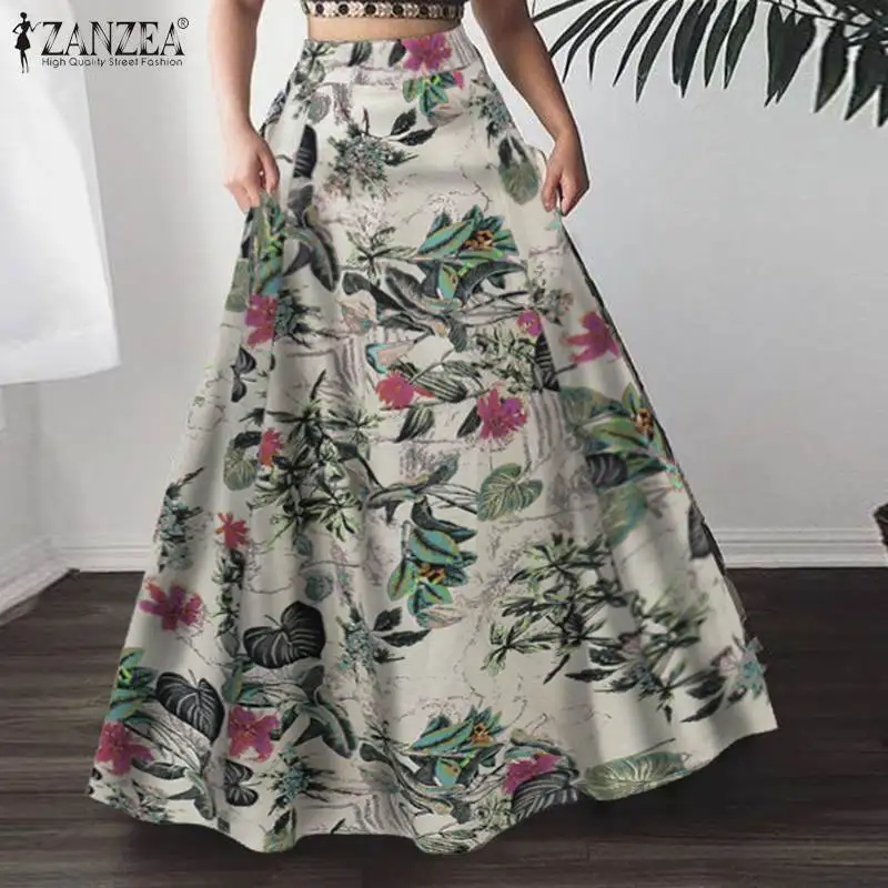 Юбка ZANZEA женская с принтом, осенняя мода, Макси Сарафан, повседневное длинное платье с высокой талией, женский цветочный халат, оверсайз, 2022