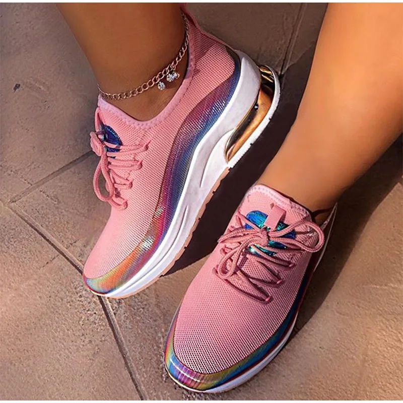 Женские кроссовки на шнуровке; Женская Вулканизированная обувь; Женская Повседневная дышащая удобная прогулочная обувь на плоской подошве; Женские кроссовки; Новинка 2020 года
