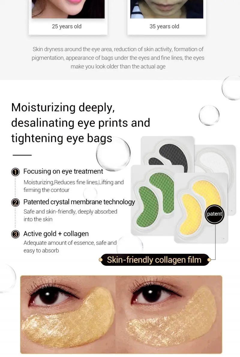 24K золота коллагеновая маска для глаз, помогает золото сокращает мимические морщины и морщины, устраняют темные круги и отечность.