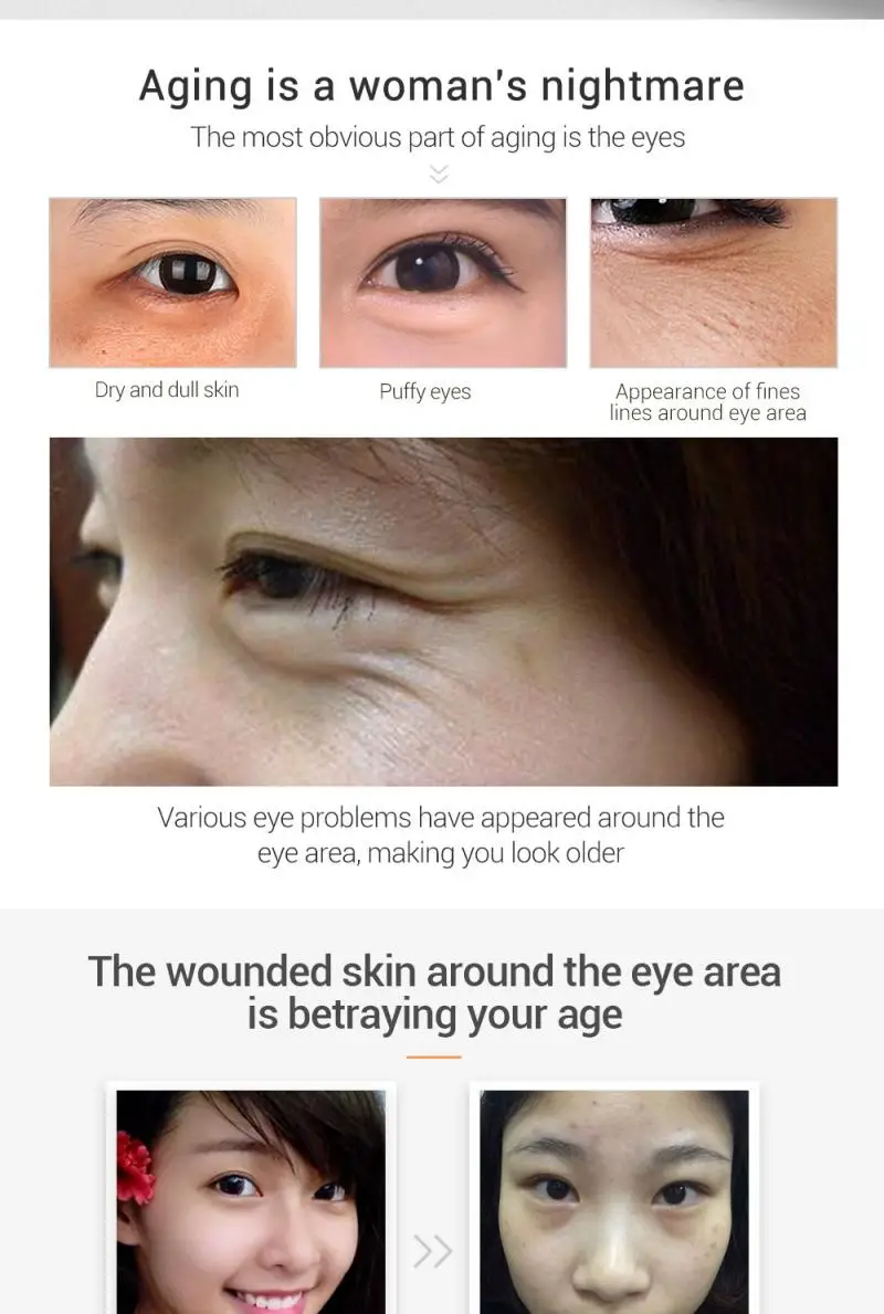 Особенности: инновационный увлажняющий глаза формула обслуживания, пополняет воду, восстанавливает глаза, полный коллагеновой маски, помогает облегчить текстуру глаз, улучшает тусклый мягкий глаз, нежный и изысканный текстуры, глаз более поглощения, питательные вещества и влага, увлажняют и питают ваши глаза, приносят вам сияющие глаза молодости.