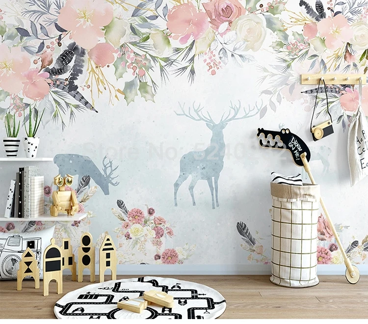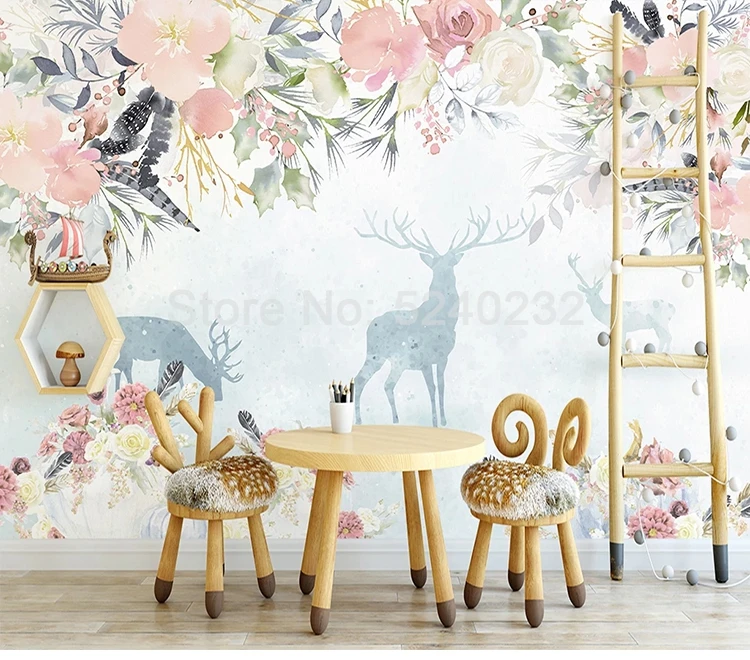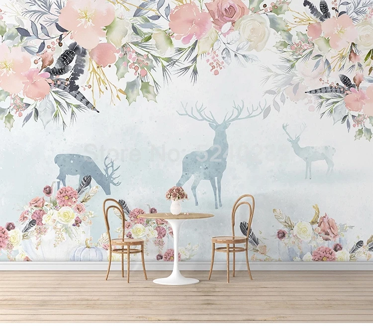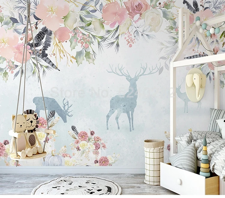 Пользовательские 3D Настенные обои ручная роспись скандинавский цветочный Лось цветок море настенная живопись Детская комната Спальня телевизор фон Настенный декор