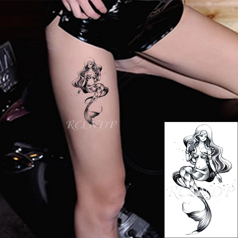 Водостойкая временная татуировка-наклейка, Сексуальная Русалка, длинные волосы, девушка, имитация татуировки, флэш-Ручная, рука нога татуировка для девочек, женщин, мужчин