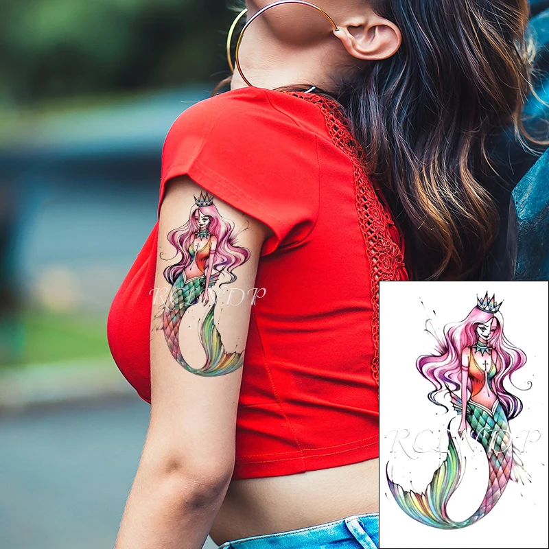 Водостойкая Временная тату-наклейка, цвет, сексуальная Русалка, дли...