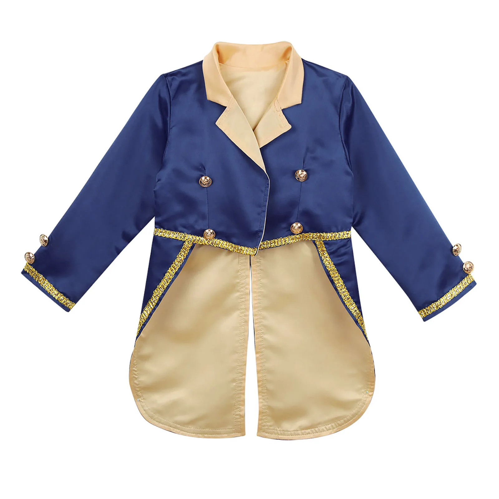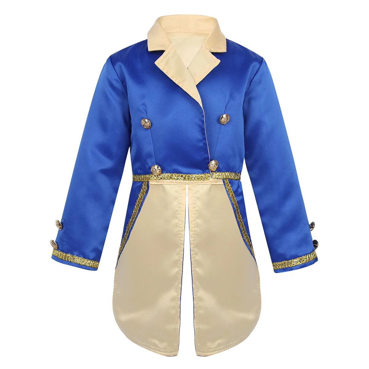 Детский карнавальный костюм принца для мальчиков, костюм для косплея с отложным воротником, куртка для смокинга, пальто для детской вечевечерние на Хэллоуин
