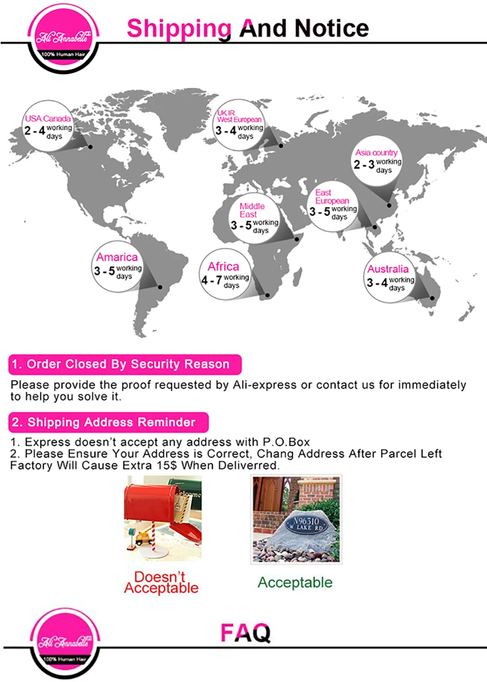 Заказы будут отправлены в течение 24 часов после оплаты. Обычно вы получаете товар в течение 3-5 рабочих дней по всему миру, если все будет хорошо.