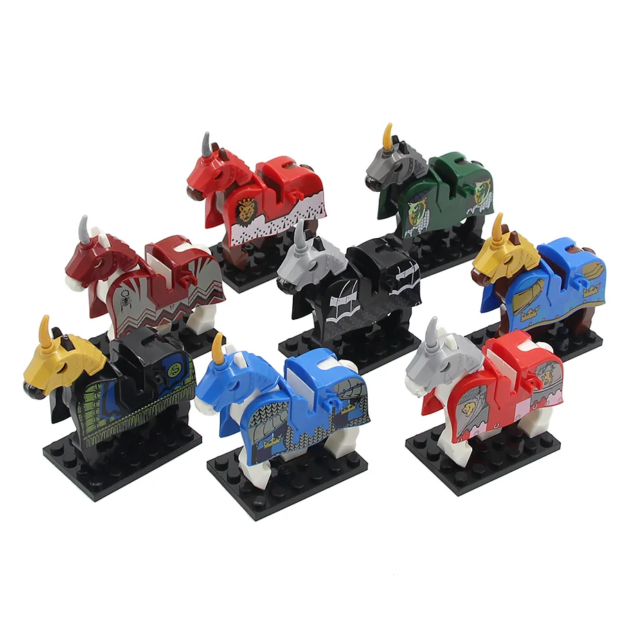 Одиночные средневековые Рыцари войны бронированная лошадь дикие животные фигурка лошадь строительные блоки MOC аксессуары наборы модели комплекты кирпичей игрушки