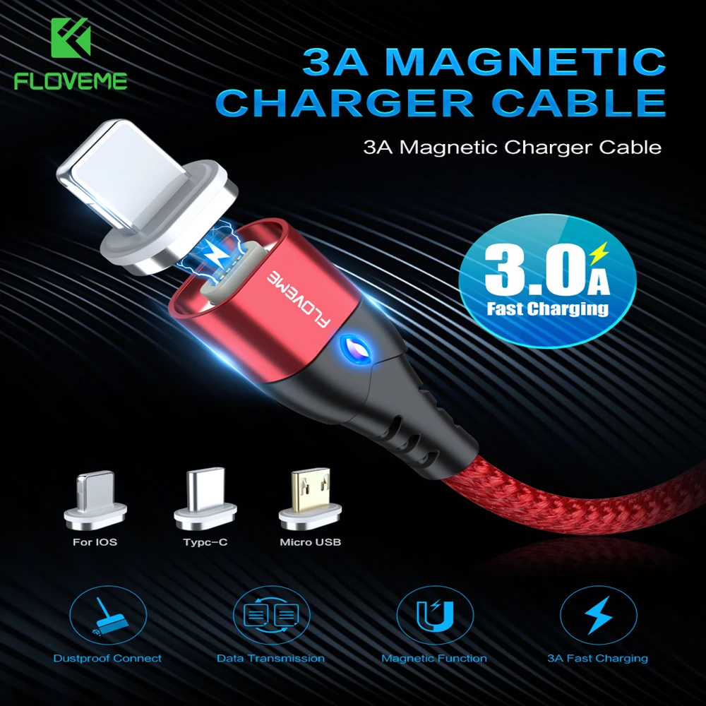 Магнитный USB-кабель FLOVEME для iPhone, зарядное устройство Micro ...