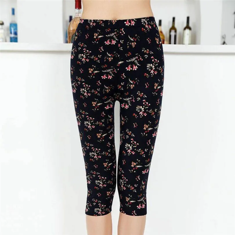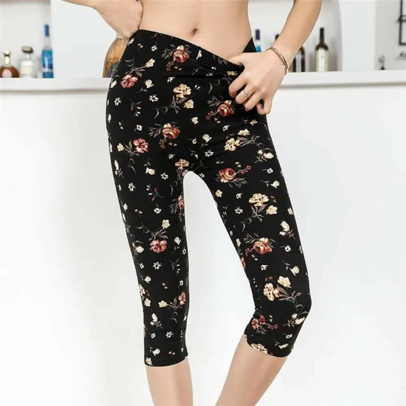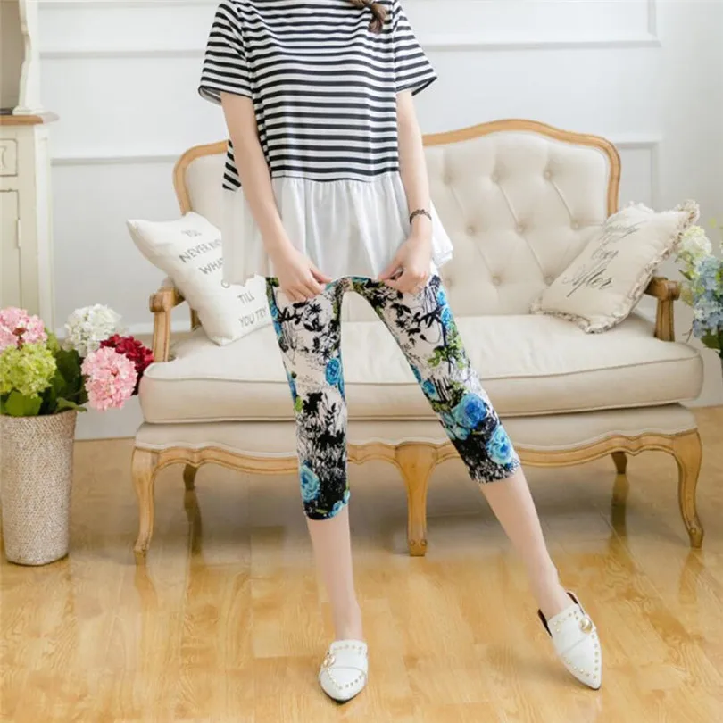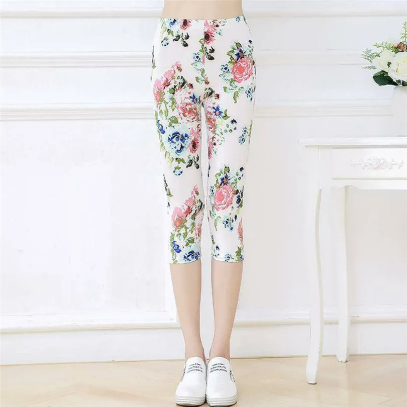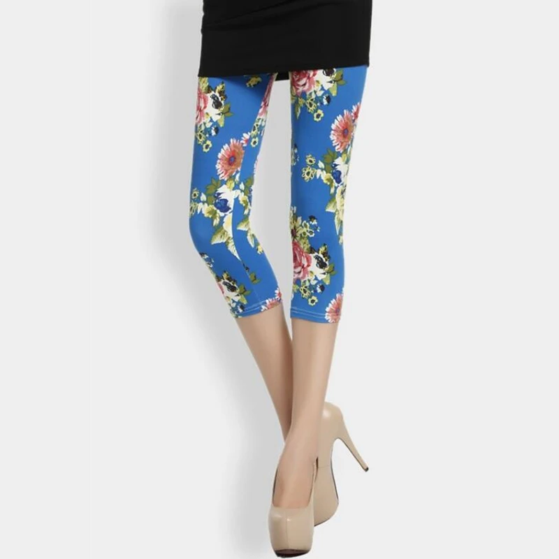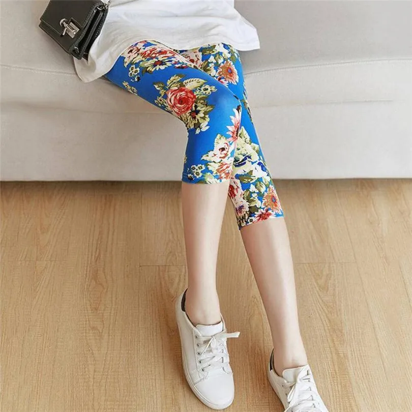 Женские леггинсы CHSDCSI, модные белые леггинсы для фитнеса с цветочным принтом, Капри с завышенной талией цвета хаки, синие шорты