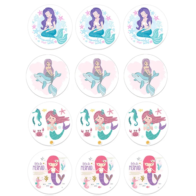 Наклейки для вечеринки русалки с днем рождения, самоклеящиеся бумаж...