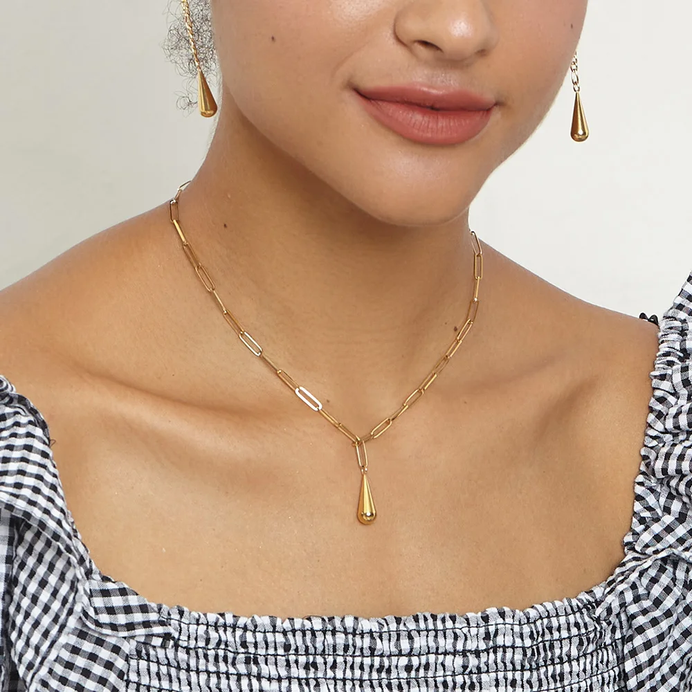 Женское ожерелье с подвеской-капелькой из нержавеющей стали