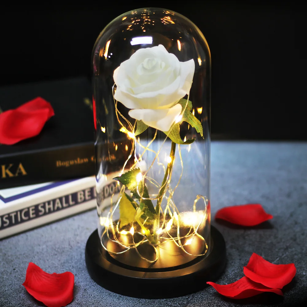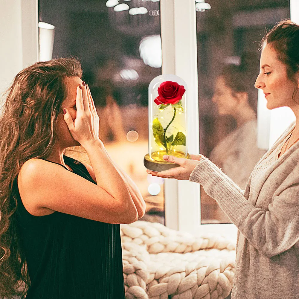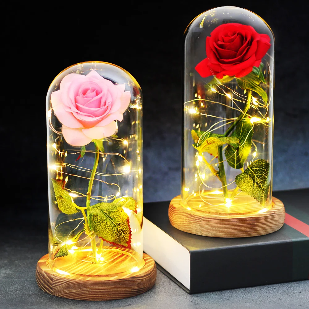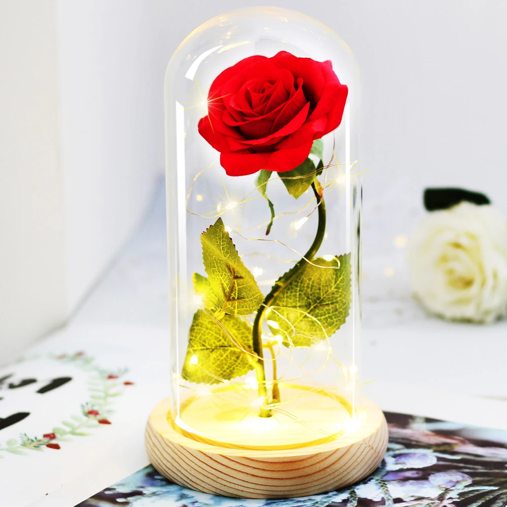 2021 романтические Искусственные цветы в стеклянном куполе Красавица и Чудовище светодиодный А светодиодная батарея подарок на день рождения и День святого Валентина