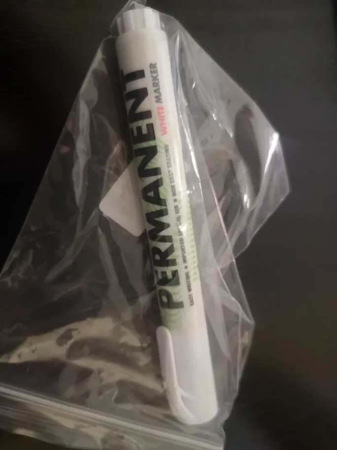 Товар добирался до меня почти 2 месяца, без отслеживания. Упаковка обычный пакетик, все целое. Расписывать особо нечего про него, после высыхания от не го тяжело избавиться. Это у меня уже не первый из Поднебесной и я ими доволен. Я использую их при сезонной смене резины на машине, что нужное колесо установить именно так где мне нужно, чередую передние и задние по своим сторонам для равномерного истерания. После снятия и нанесения информации на внутренней стороне резины, минут через 20 колеса отмываю мойкой высокого давления. Надпись всегда остаётся. Вообщем я доволен покупкой.