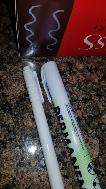 обычный маркер. пишет аккуратно. покупал для маркировки шин - около 100 штук подписал - вроде ещё запас есть. да, при доставке повредили упаковку и один маркер высох из-за снятого колпачка. продавец пошёл на уступки - предложил вернуть деньги или выслать новый маркер. товар соответствует цена-качество