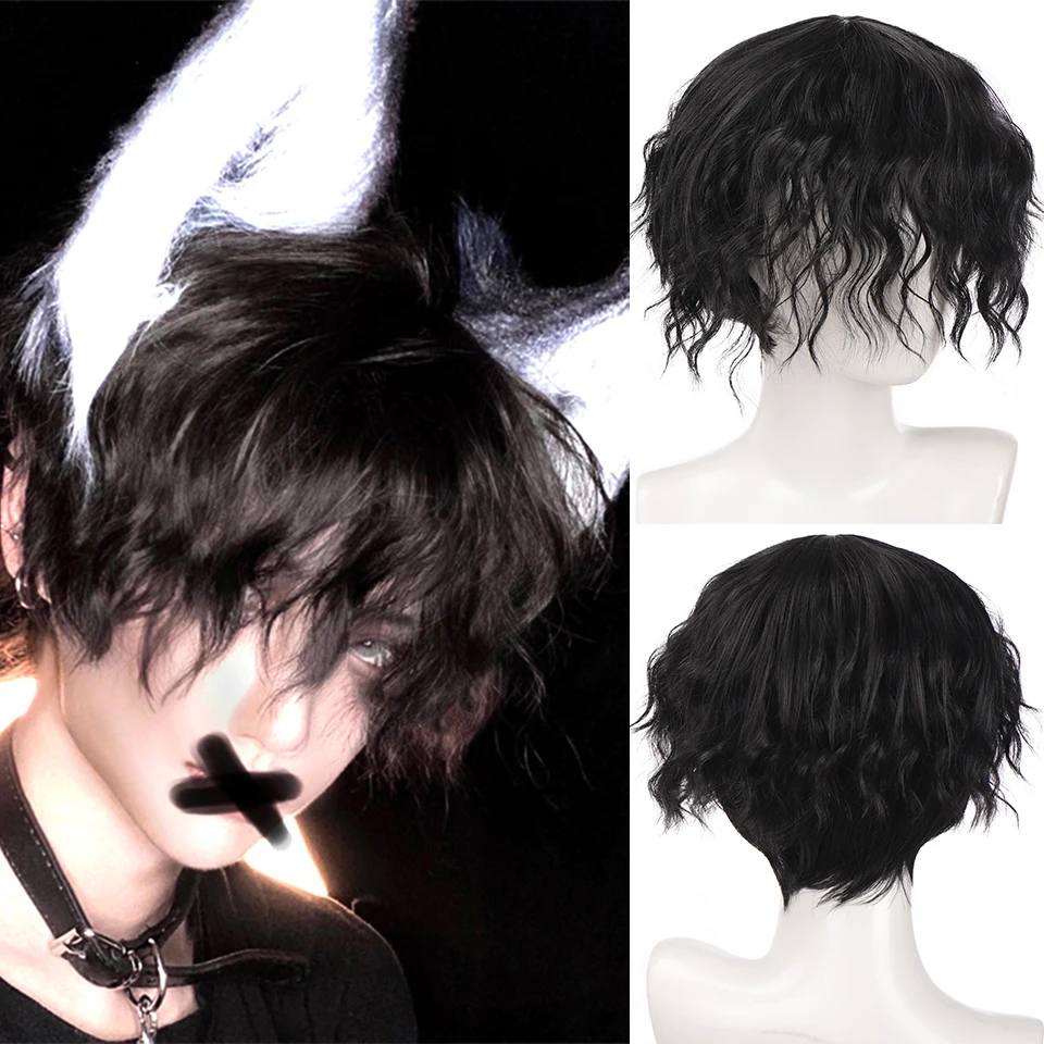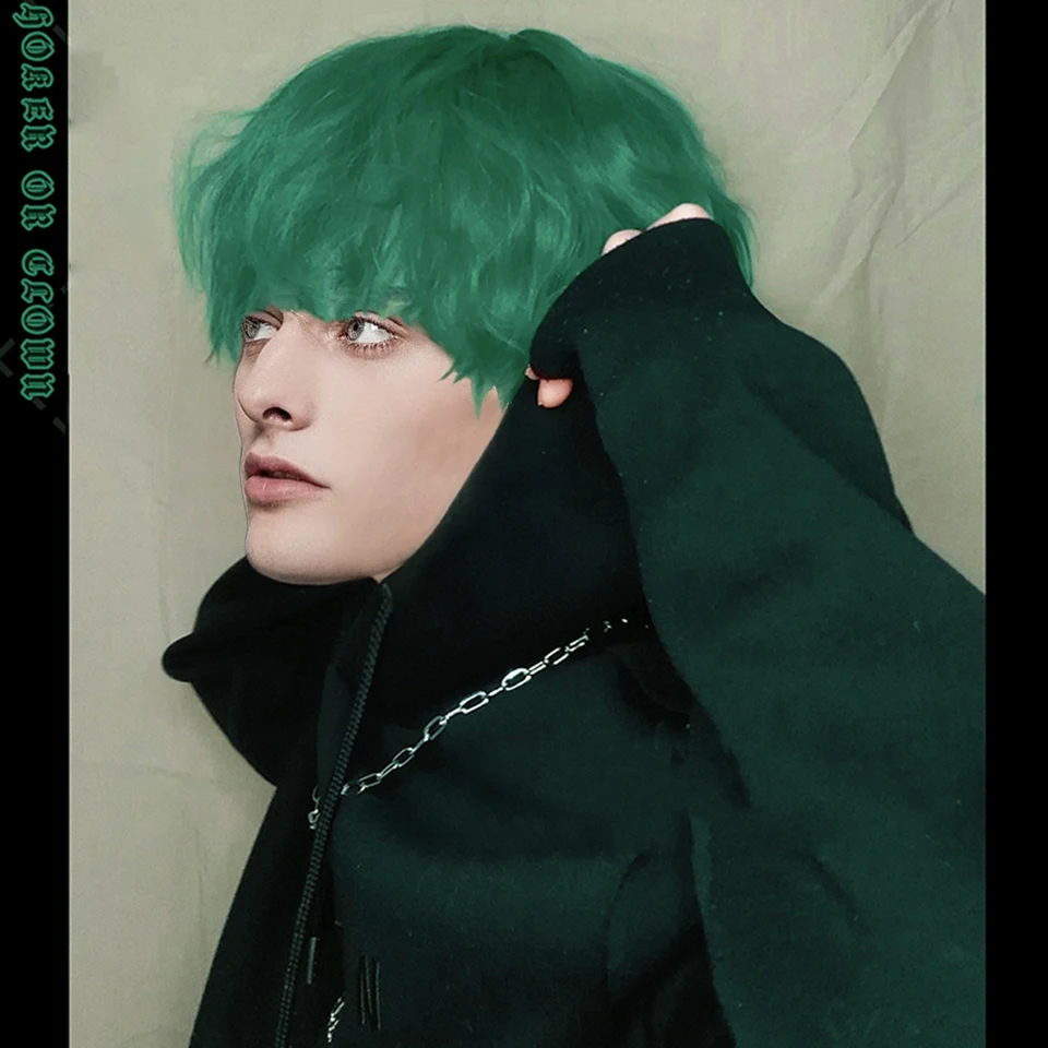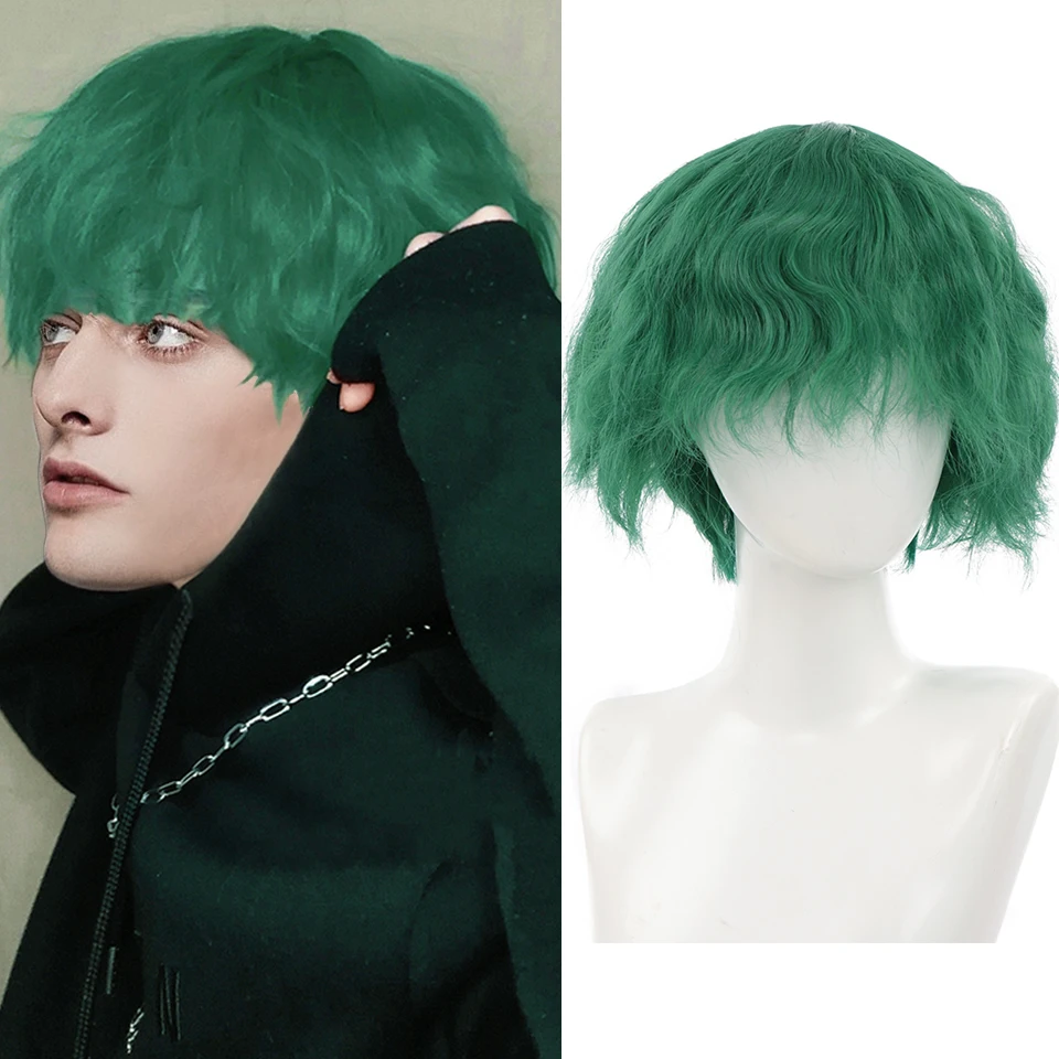 Парик AILIADE мужской для косплея, синтетические короткие кудрявые волосы темно-зеленого цвета, термостойкий, машинная работа, для вечерние, аниме