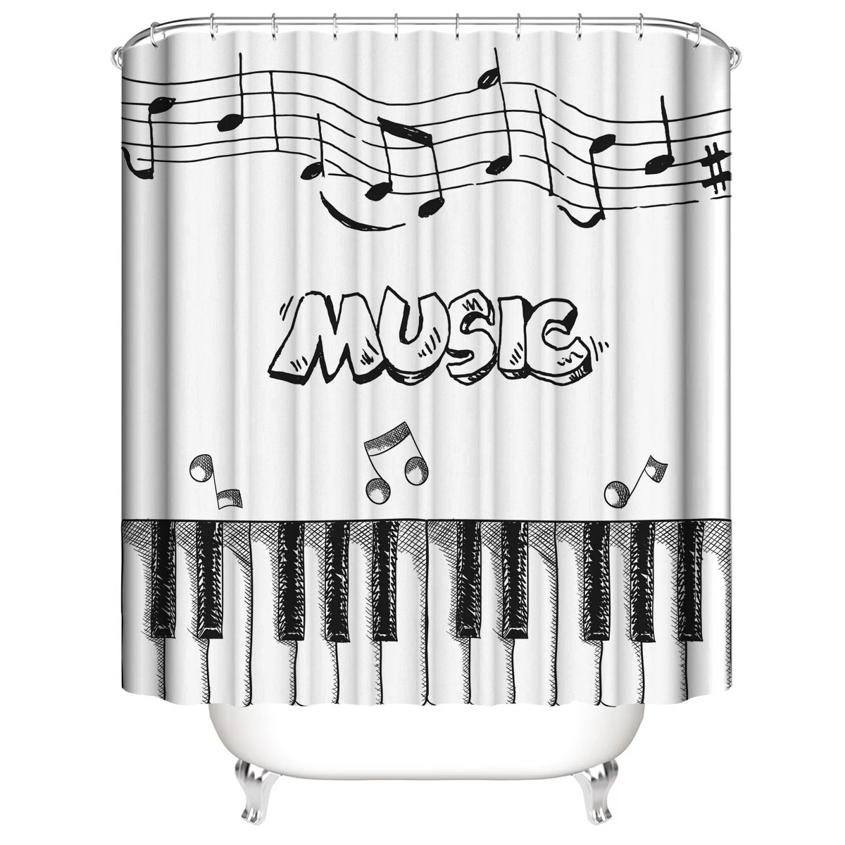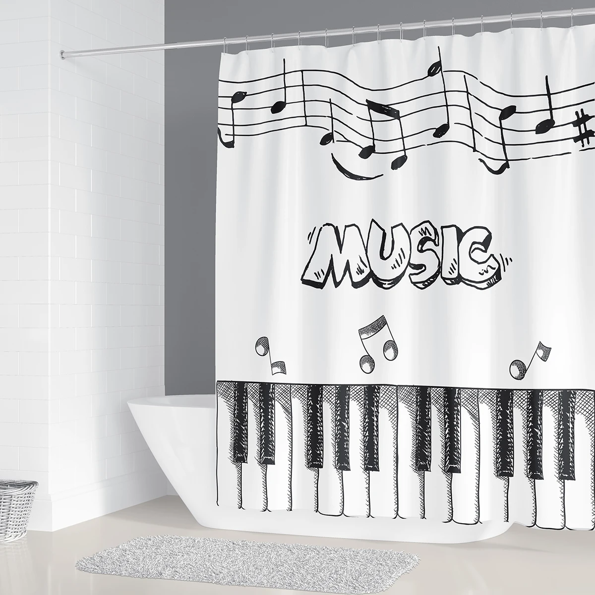 Комплект занавесок для ванной комнаты пианино-ключ, занавеска для душа с музыкой, с 12 крючками, Противоскользящие коврики, крышка для туалета, коврик для ванной, ковер
