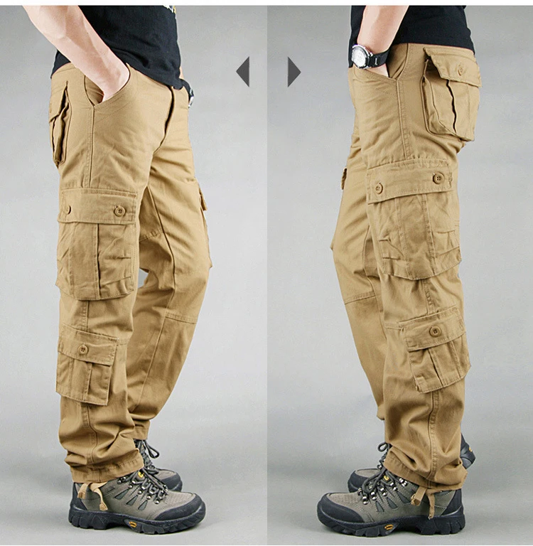 Тип изделия: Для мужчин мужские карго Брюки Сезон: лето, весна, осень Стиль: Модный, Повседневный, Спортивный, Safari, в стиле милитари Брюки Длина: полный Длина штаны Материал: 100% хлопок Узор: бежевый, зеленый, хаки, черный, желтый, темно-синий Особенности: Толщина: Обычный Мягкость: мягкий Эластичность: Нет Тип модели: Fit Дизайн: классический, с карманами Количество карманов: шесть, восемь Размер: большие размеры: 30,31,32,33,34,35,36,38,40,42,44 Упаковка включает в себя: 1 * Для мужчин мужские карго Брюки