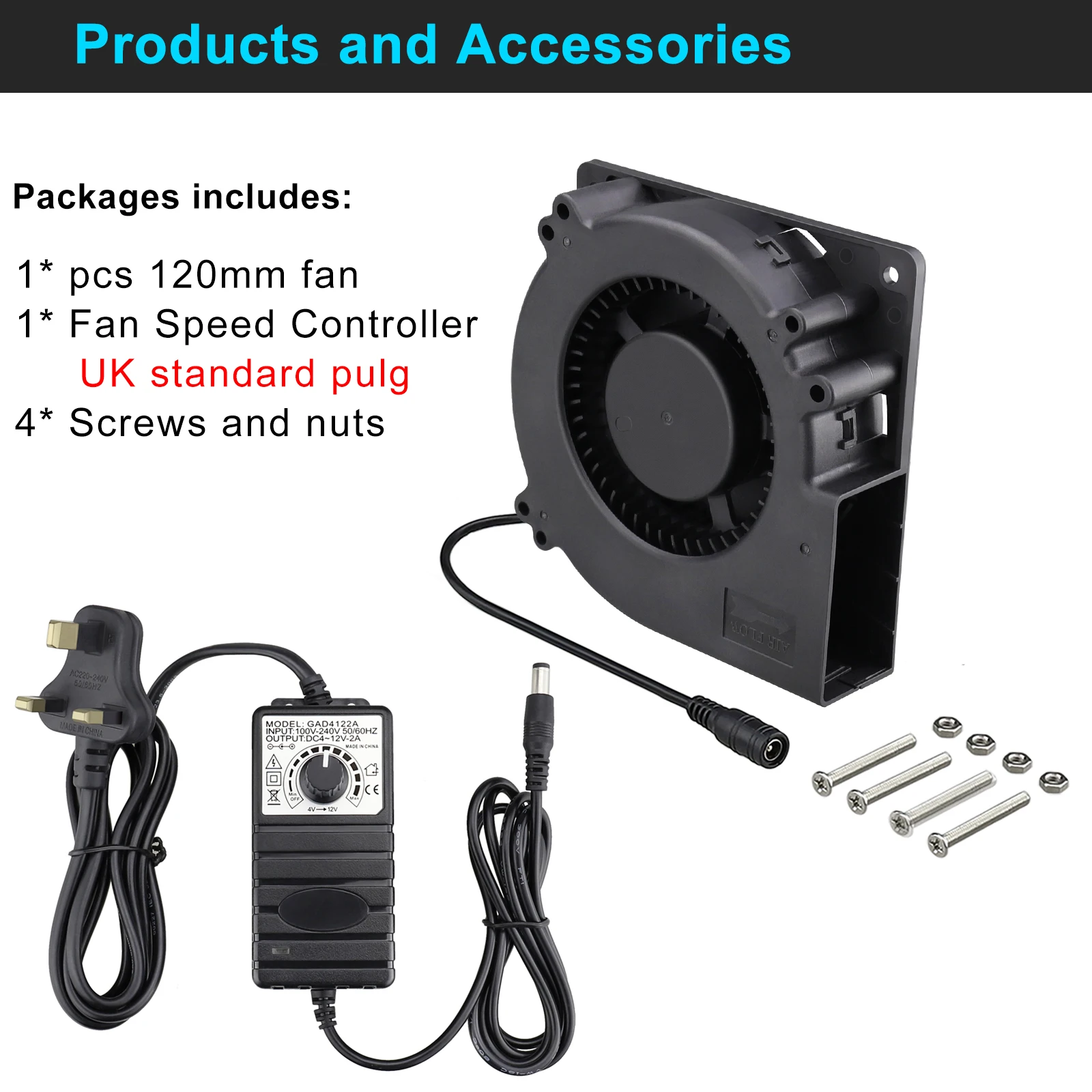 1 Набор 120 мм воздуходувки + US/UK/EU adapte(Будет отправлен фактический Вольт/разъем, что ваш выбор)