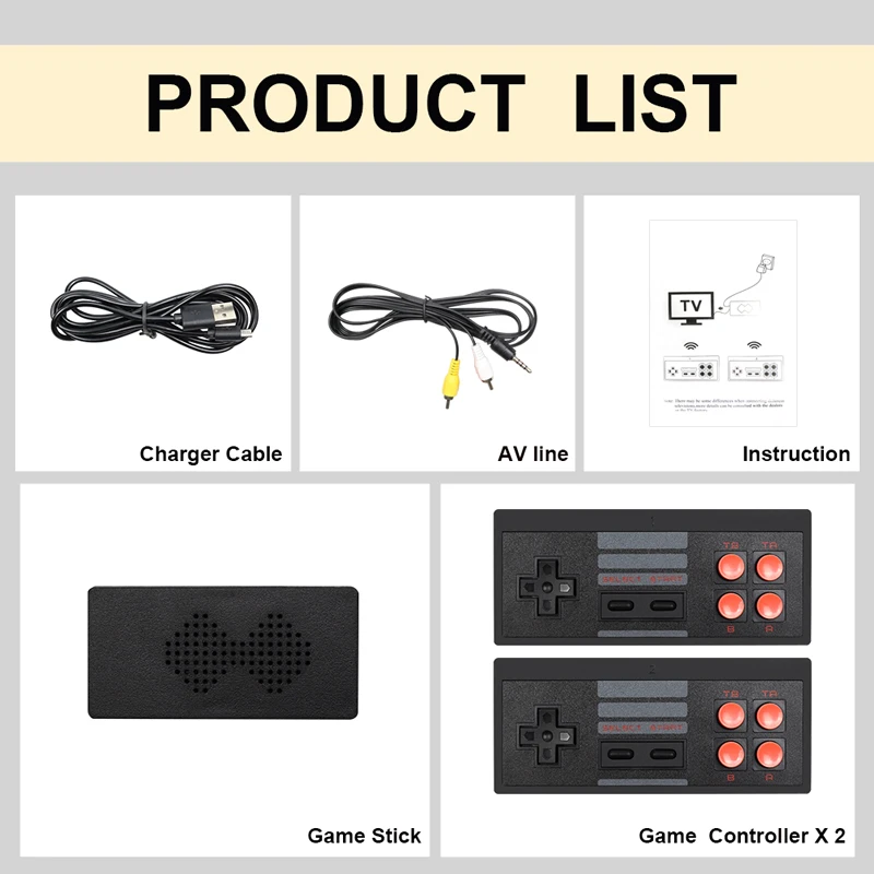Игровая приставка для видеоигр, 1800 встроенных игр, 8 бит, портативная игровая консоль, двойной беспроводной контроллер, геймпад, HD и AV ТВ-выход