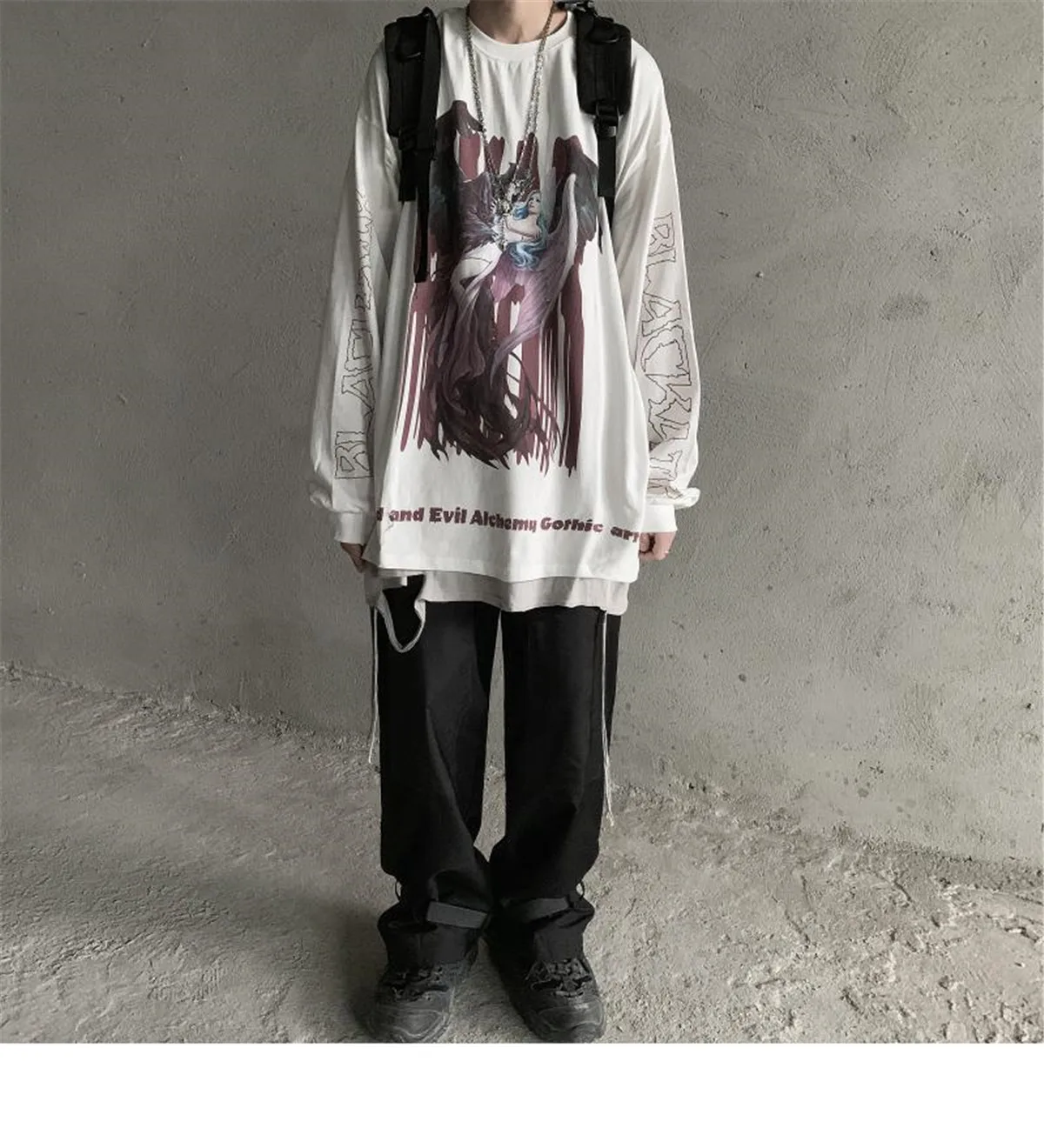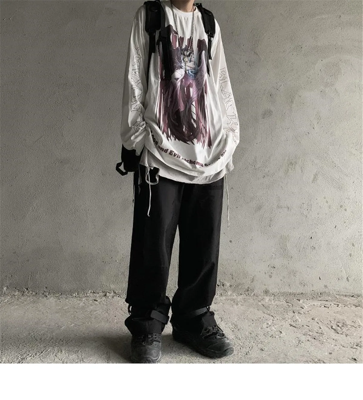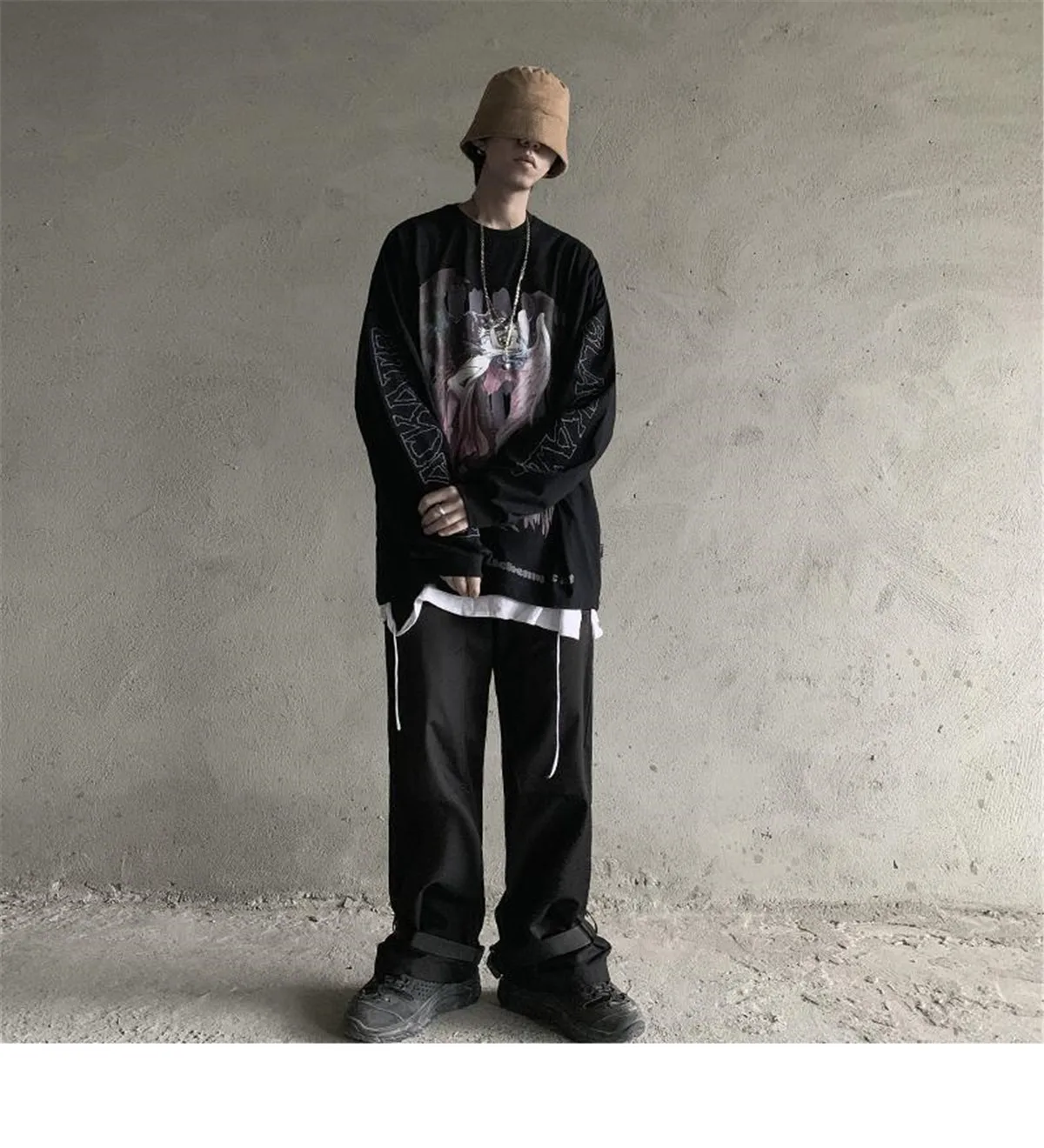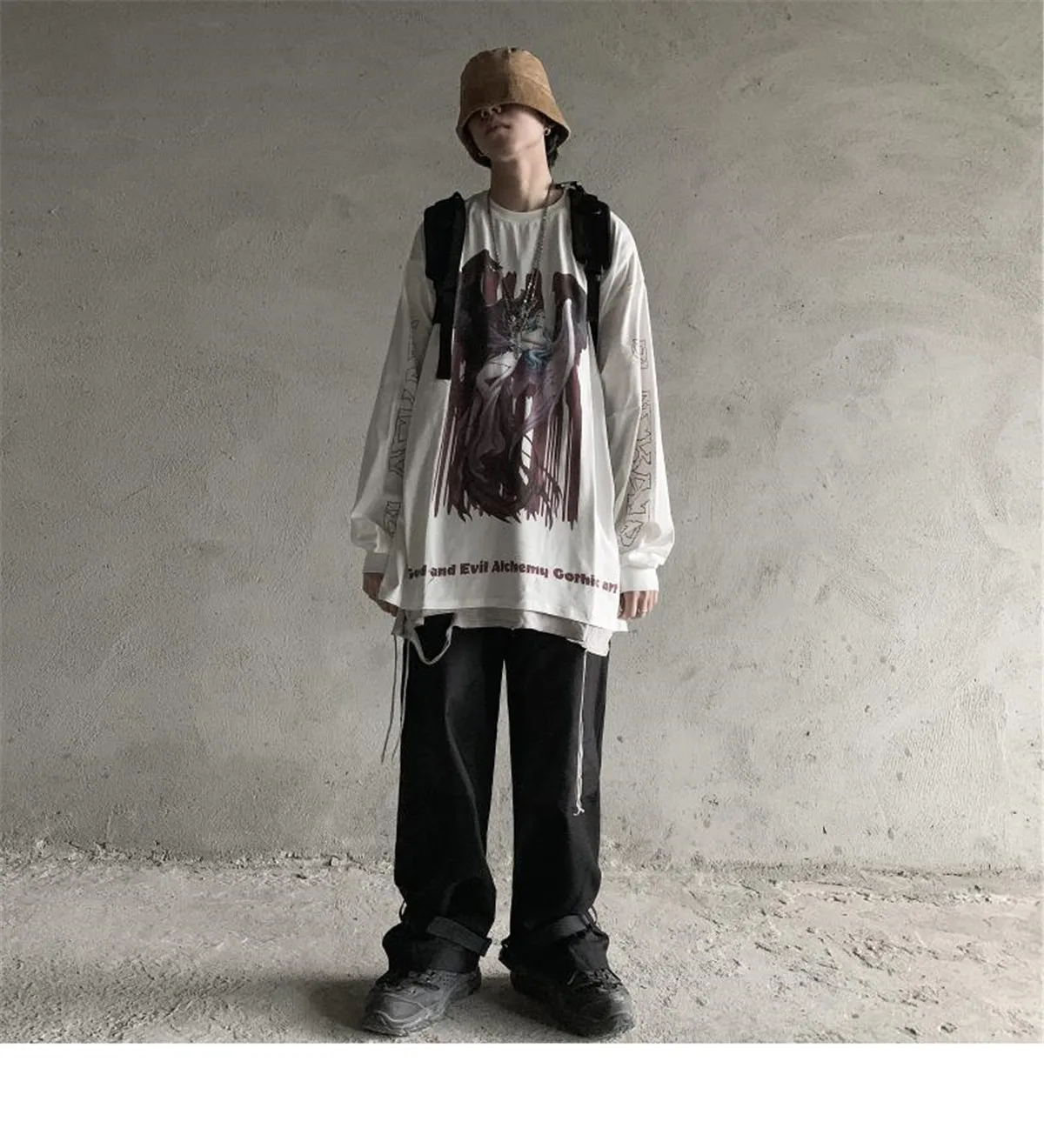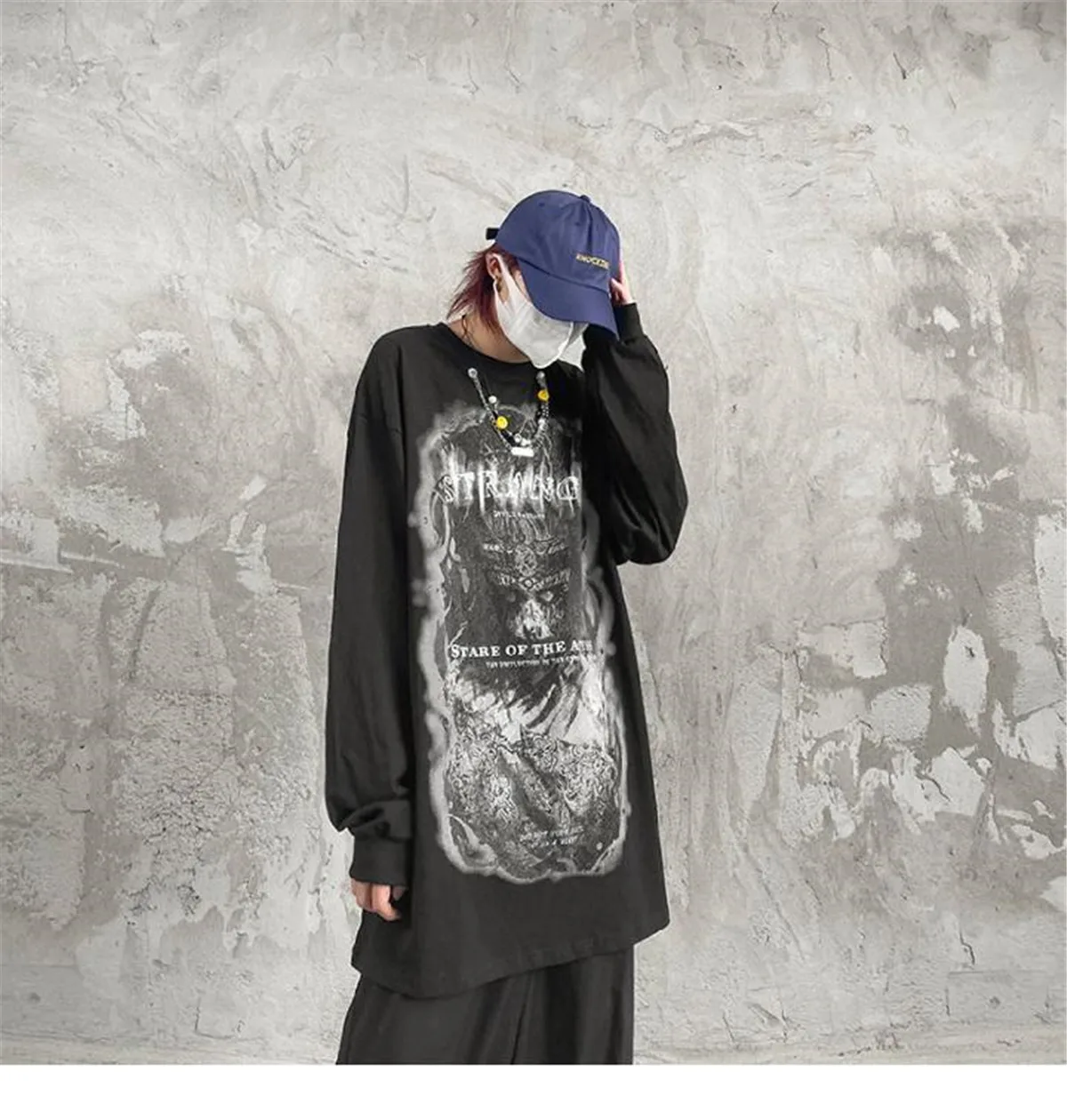 Футболка мужская в стиле Харадзюку, стильная тенниска в готическом стиле, крутая майка с длинным рукавом, крутая рубашка в стиле панк, топ в японском стиле, весна-лето