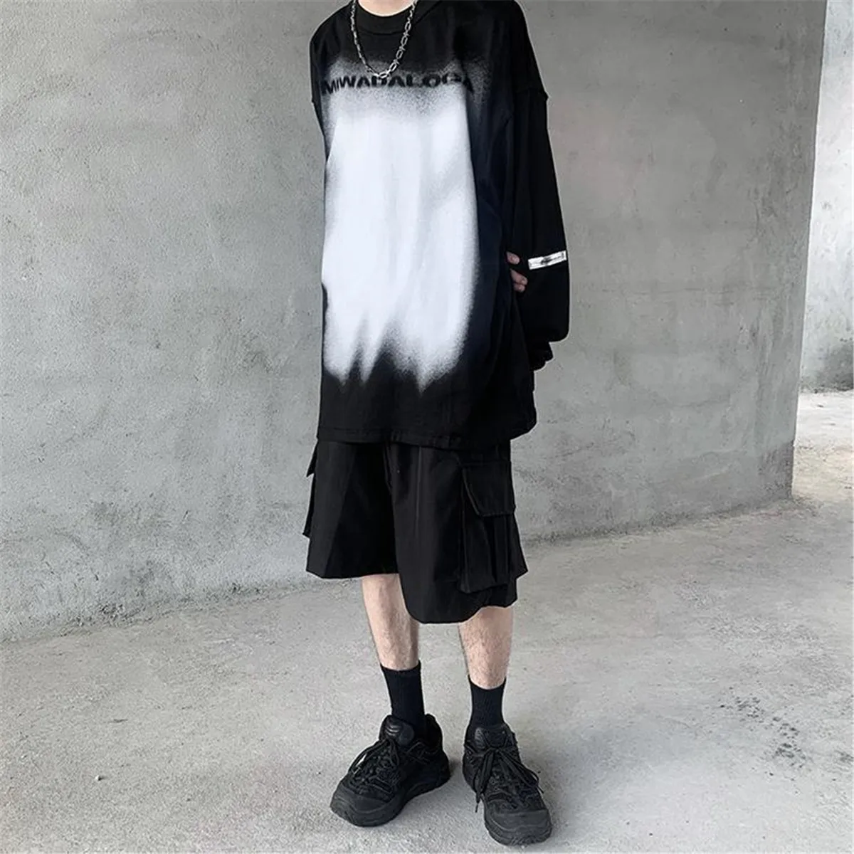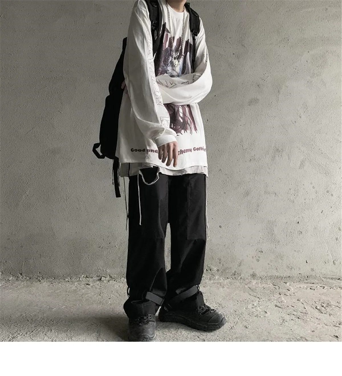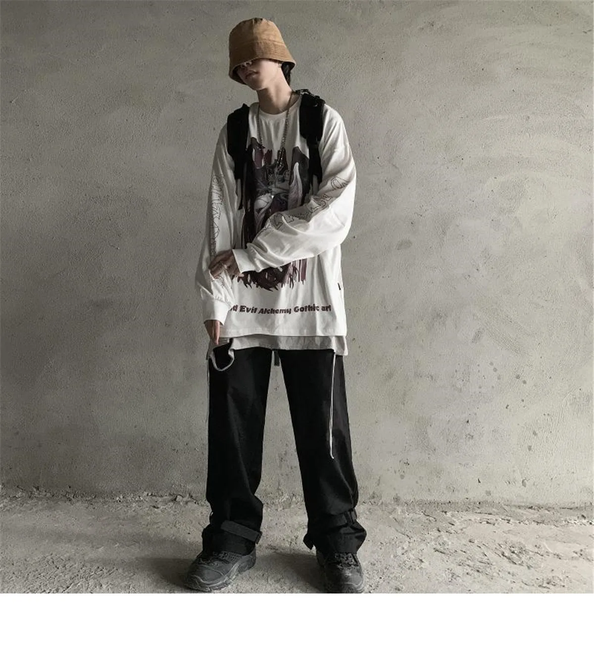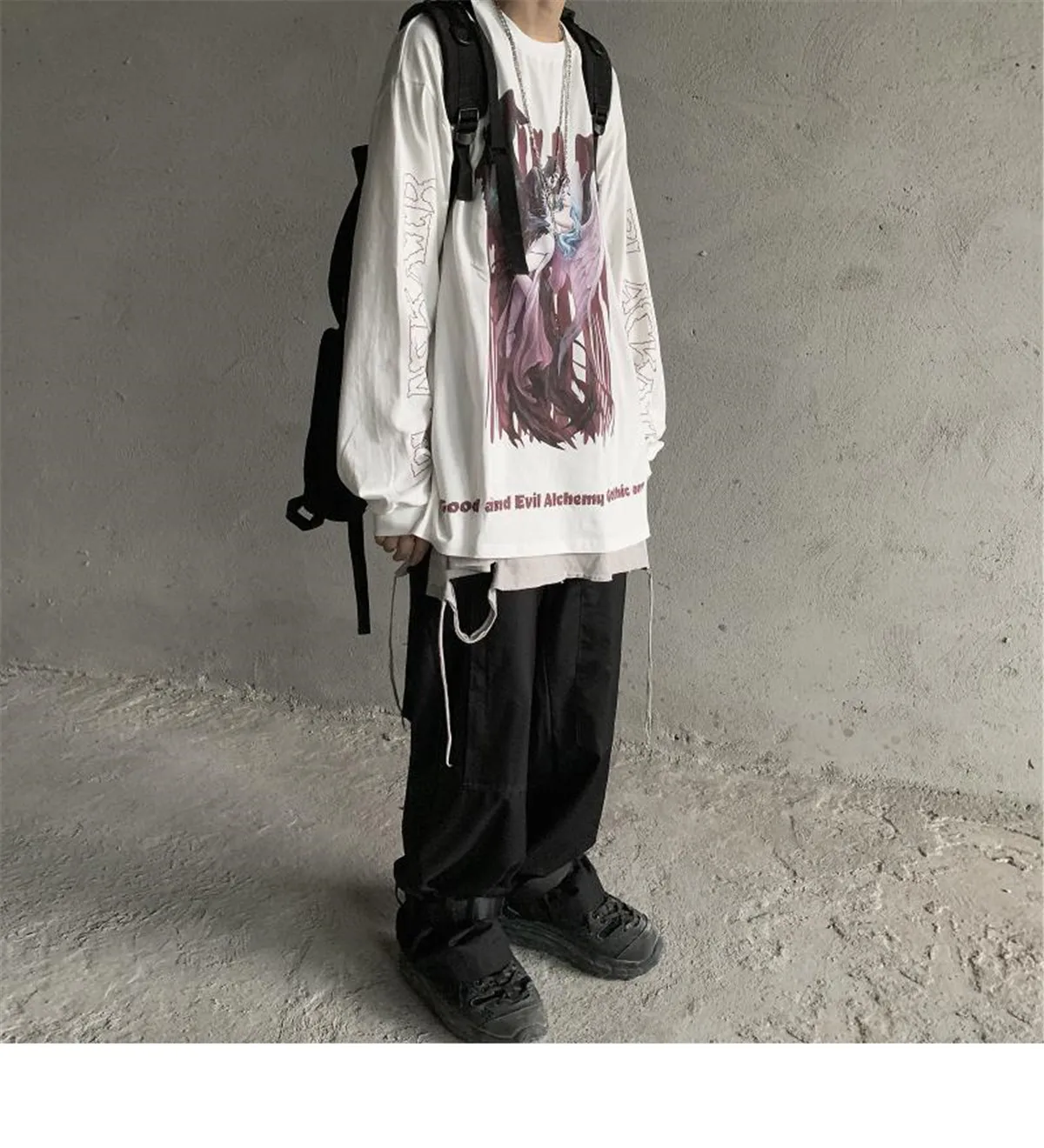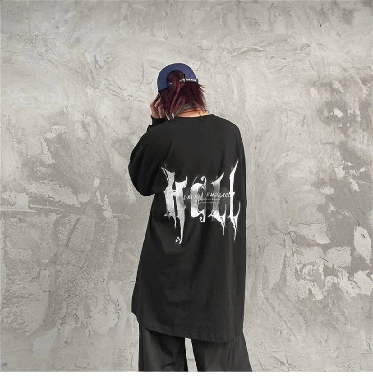 Футболка мужская в стиле Харадзюку, стильная тенниска в готическом стиле, крутая майка с длинным рукавом, крутая рубашка в стиле панк, топ в японском стиле, весна-лето