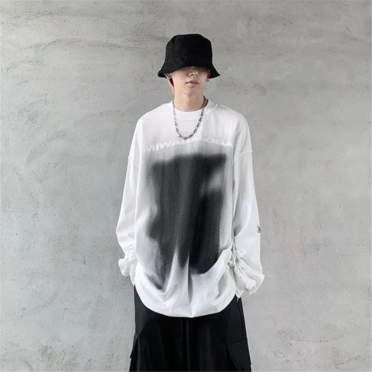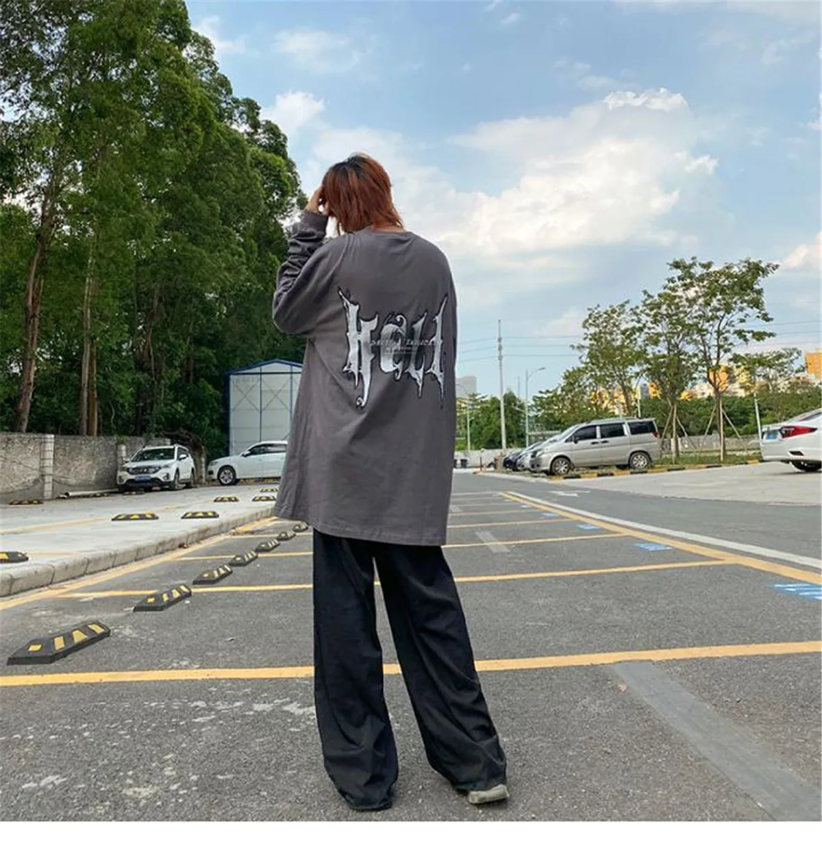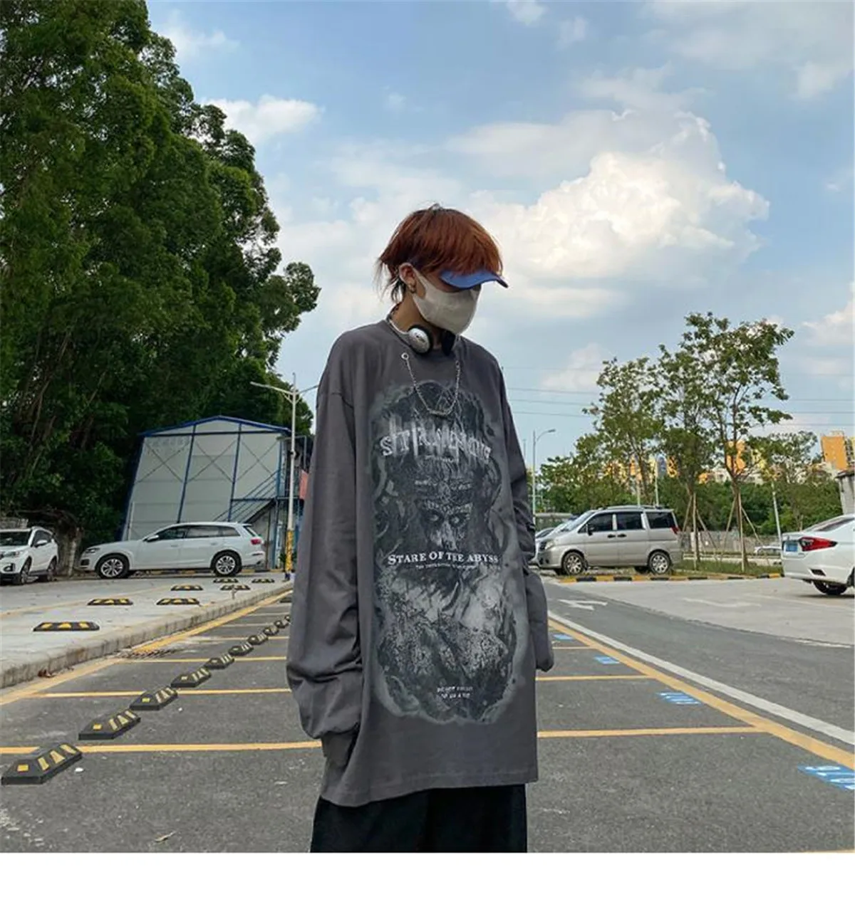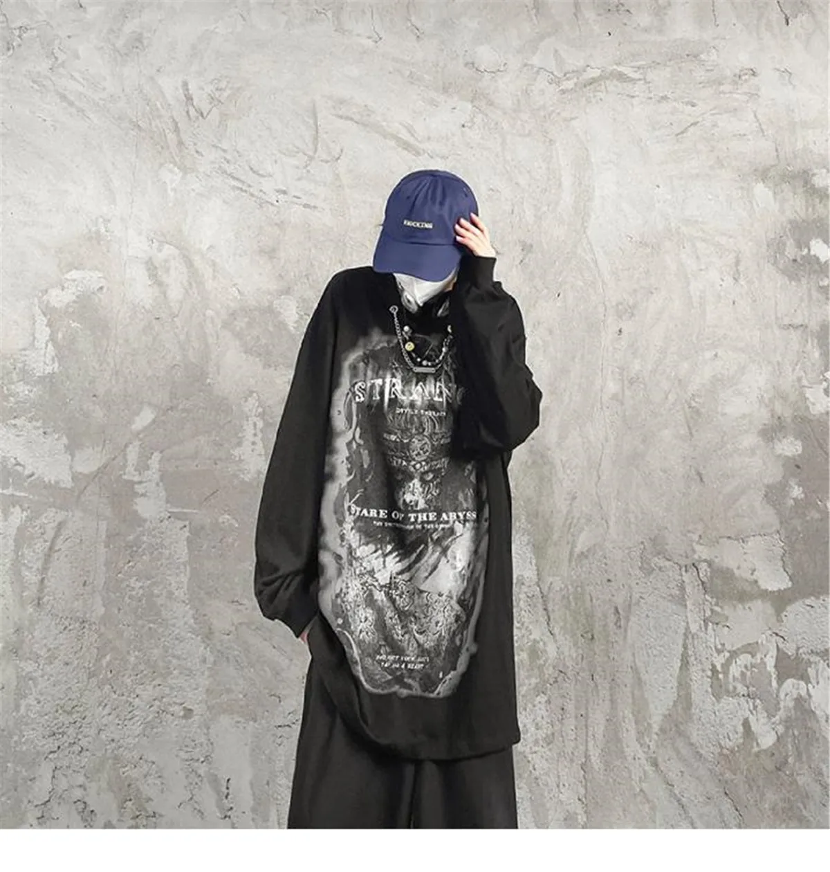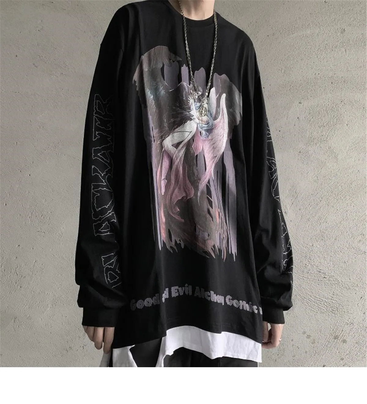 Футболка мужская в стиле Харадзюку, стильная тенниска в готическом стиле, крутая майка с длинным рукавом, крутая рубашка в стиле панк, топ в японском стиле, весна-лето