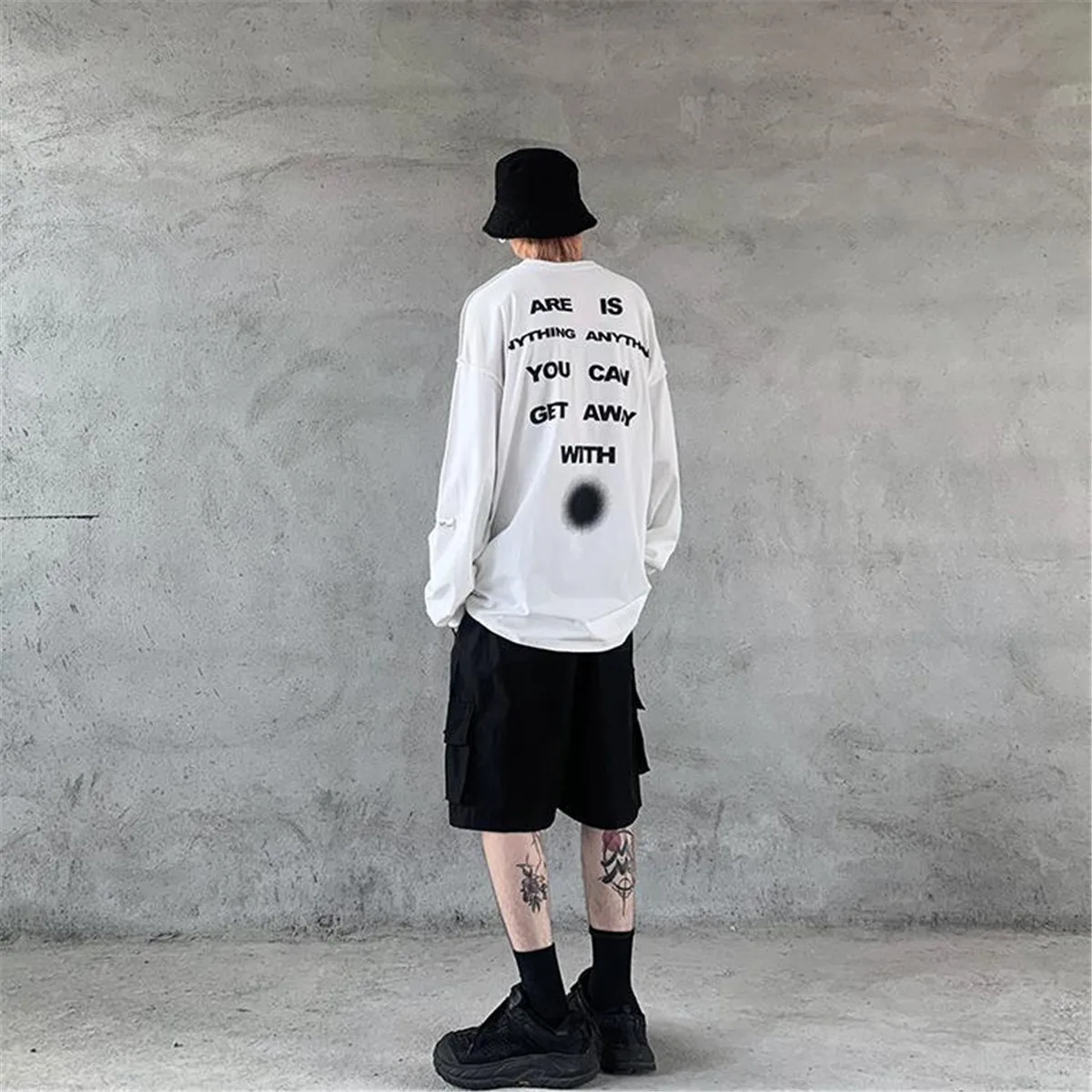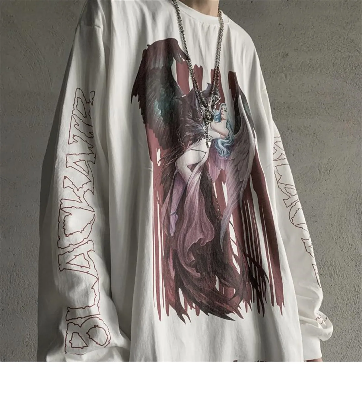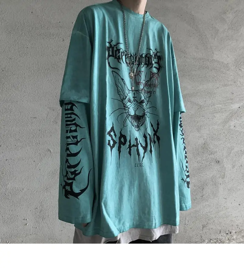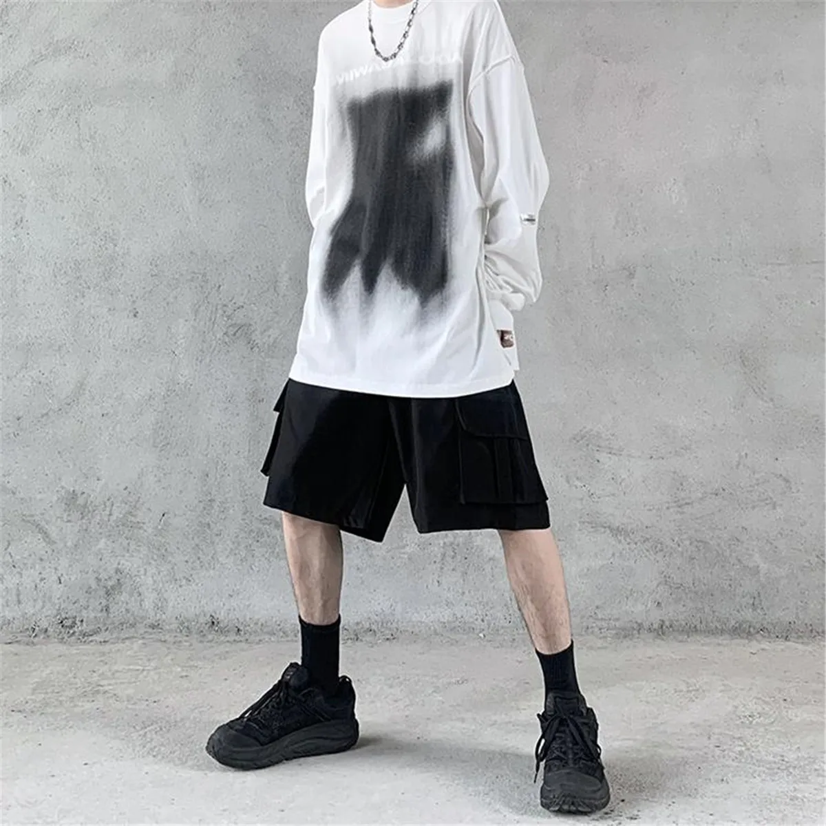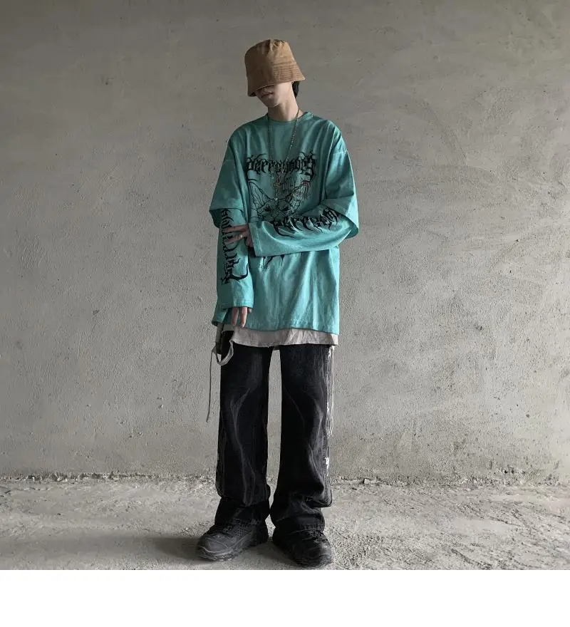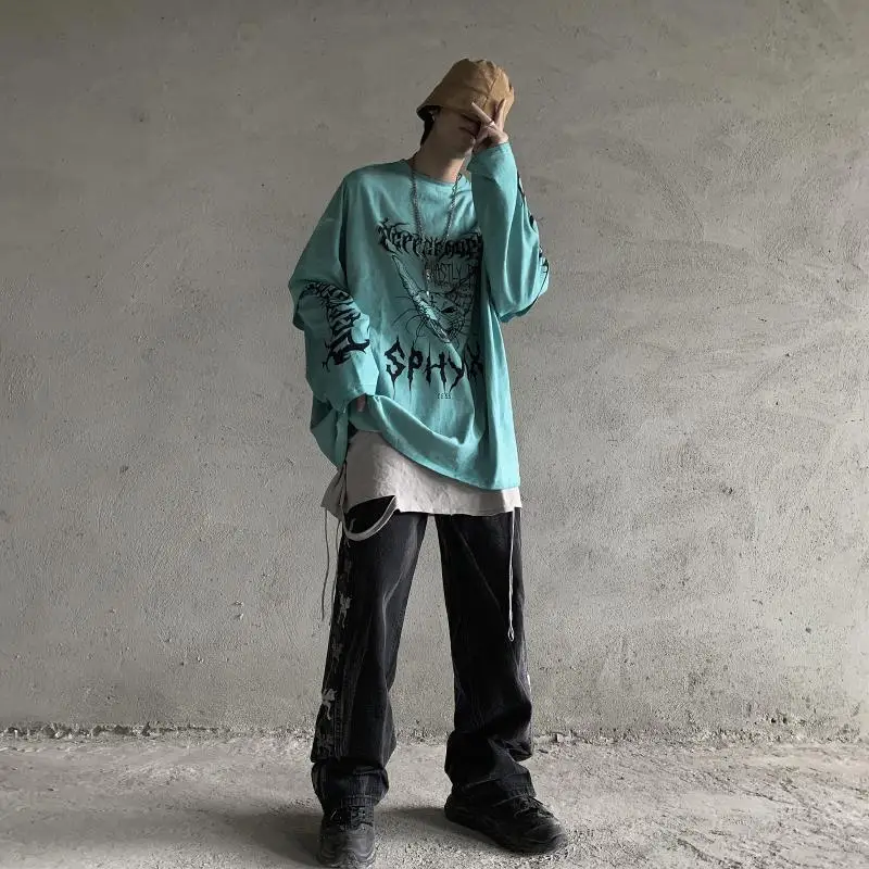 Футболка мужская в стиле Харадзюку, стильная тенниска в готическом стиле, крутая майка с длинным рукавом, крутая рубашка в стиле панк, топ в японском стиле, весна-лето