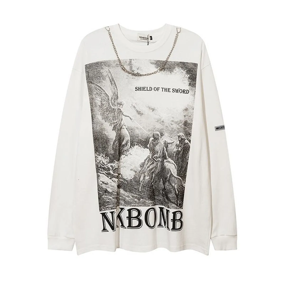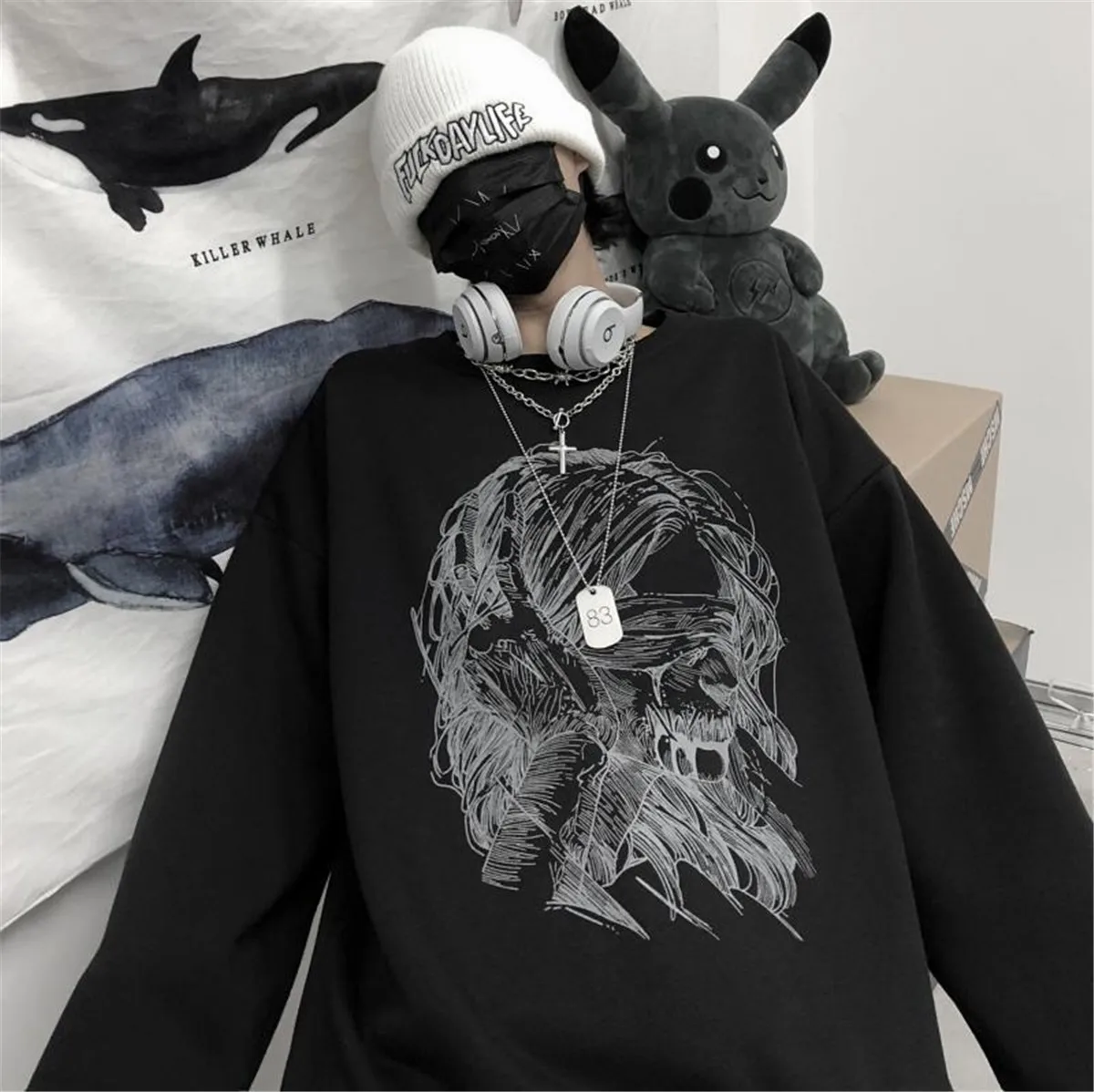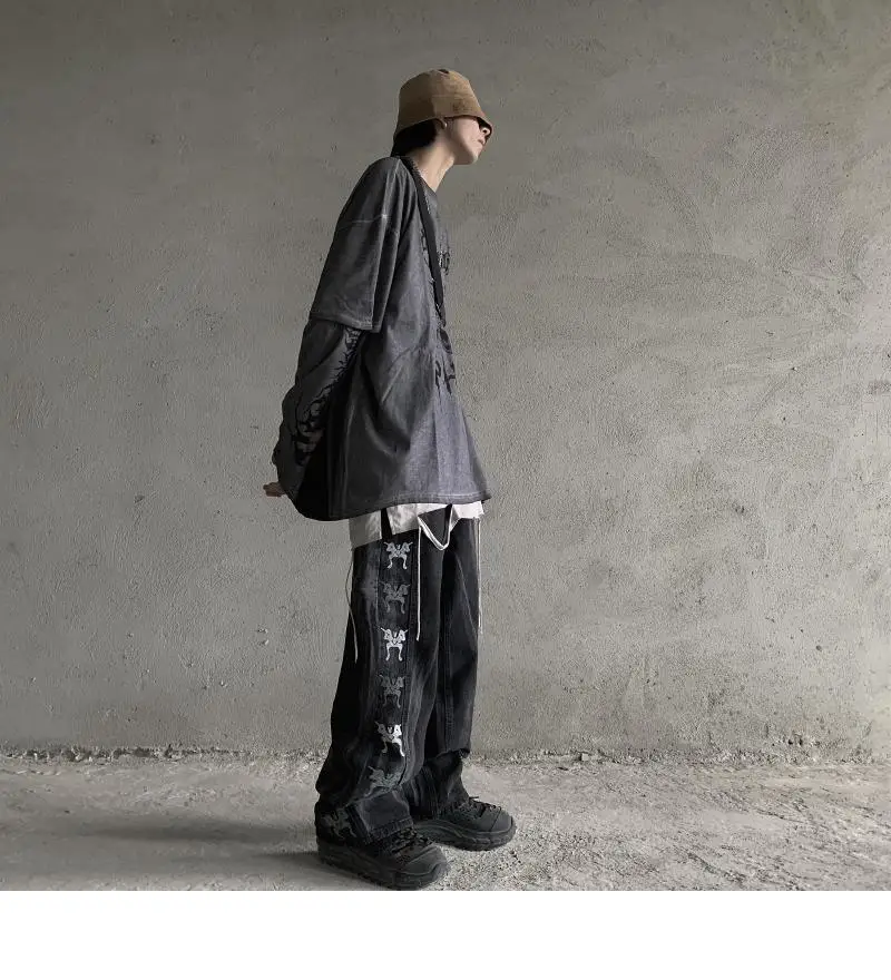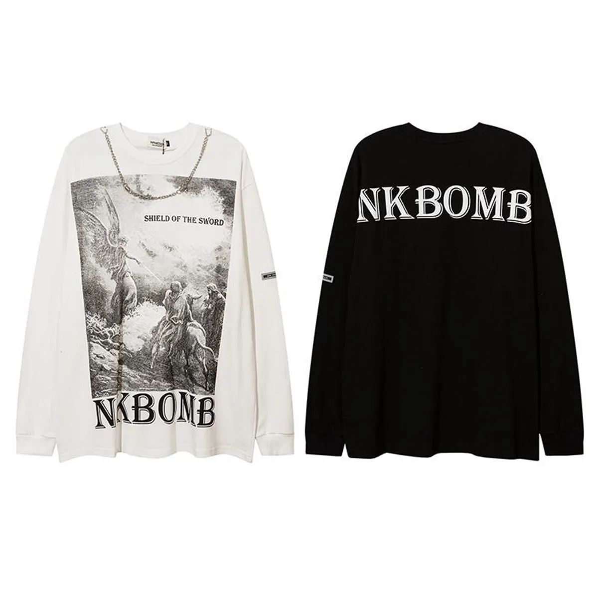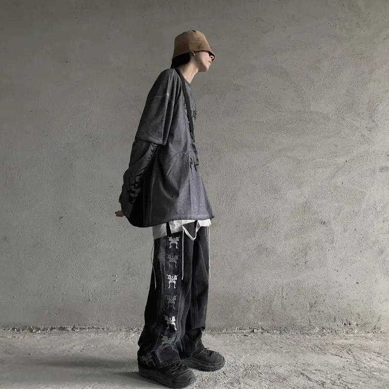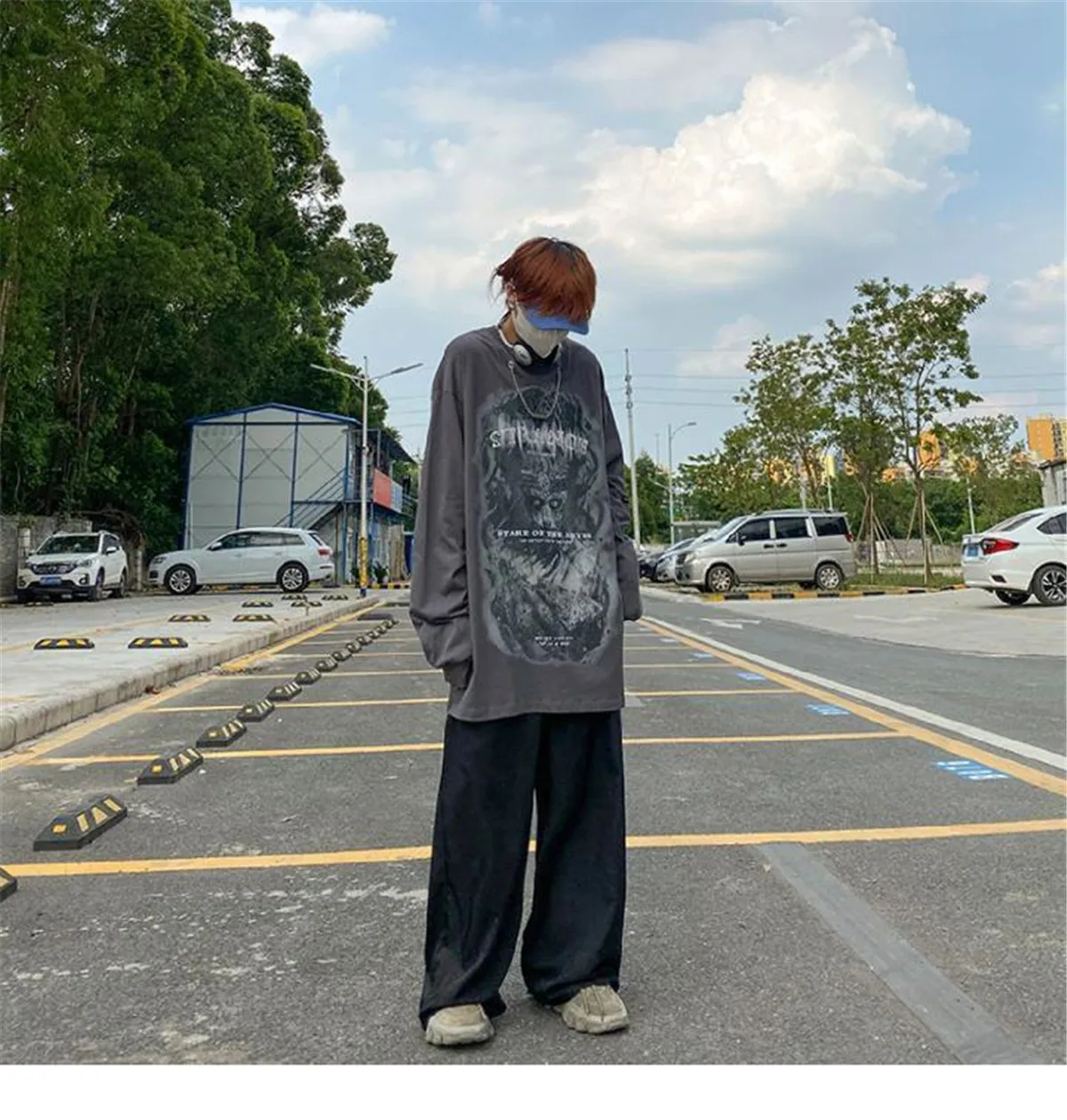 Футболка мужская в стиле Харадзюку, стильная тенниска в готическом стиле, крутая майка с длинным рукавом, крутая рубашка в стиле панк, топ в японском стиле, весна-лето