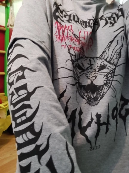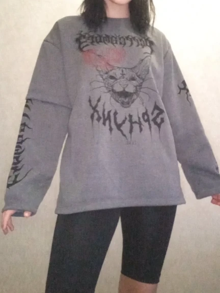 На рост 182 и длинные руки - ок, оверсайз, но больше бы не помешало. По качеству нареканий нет, торчащих ниток 1-2 и то маленькие, ткань плотная, рисунок яркий, чёткий, после стирки не слез, сама кофта не села. Держите крысу и вк iddmxdmxx