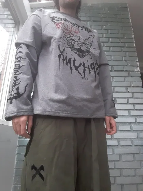 ахуеть спасибо папаша что подарил мне этот лонгслив серого цвета двадцатого века, очень качественный, чего я вообще не ожидала. принт сделан хорошо, ткань ахуевшая, пушка ребят, не пожалеете. заказ сделала 11 ноября, из-за ебаной почты которая перепутала все нахуй адреса, пришло бы раньше, а так забрала 10 декабря, что тоже не долго. ps берите большой размер!