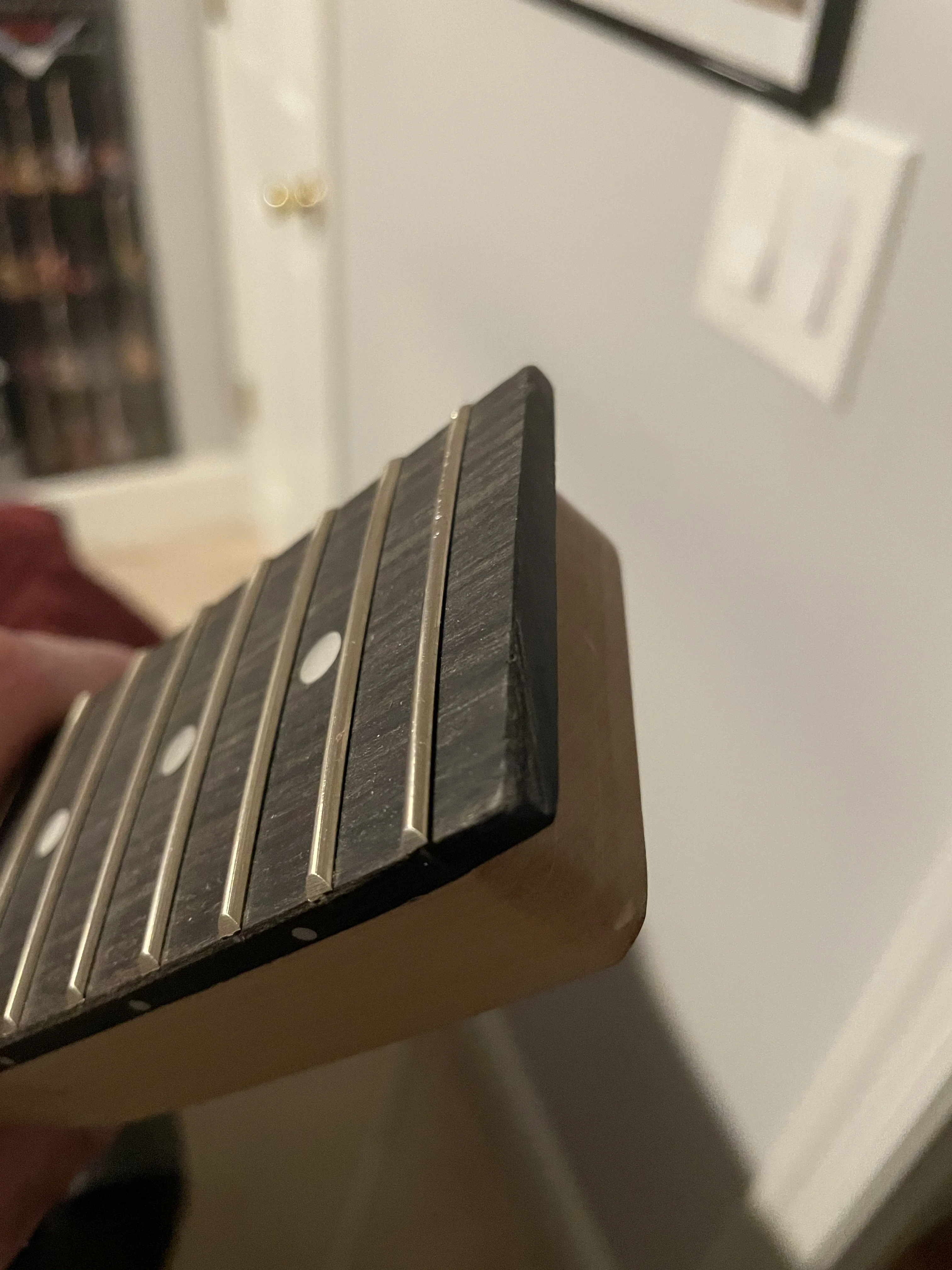 дошёл быстро, на вид все хорошо, но пришëл без верхнего порожка, упаковка не очень, коробка+ очень тоненький материал по верх грифа, из за этого есть видимые замятыши при доставке, касательно ладов, часть вкатана не до конца, есть щели. за свои деньги неплох, но недочеты все таки имеются