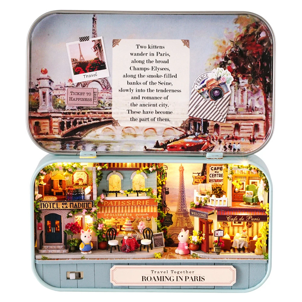 Светодиодный для самостоятельной сборки кукольного домика в Парижском Париже, миниатюрная детская игрушка художественное ремесло, миниатюрная мебель для кукольного домика, светильник ка, игрушки