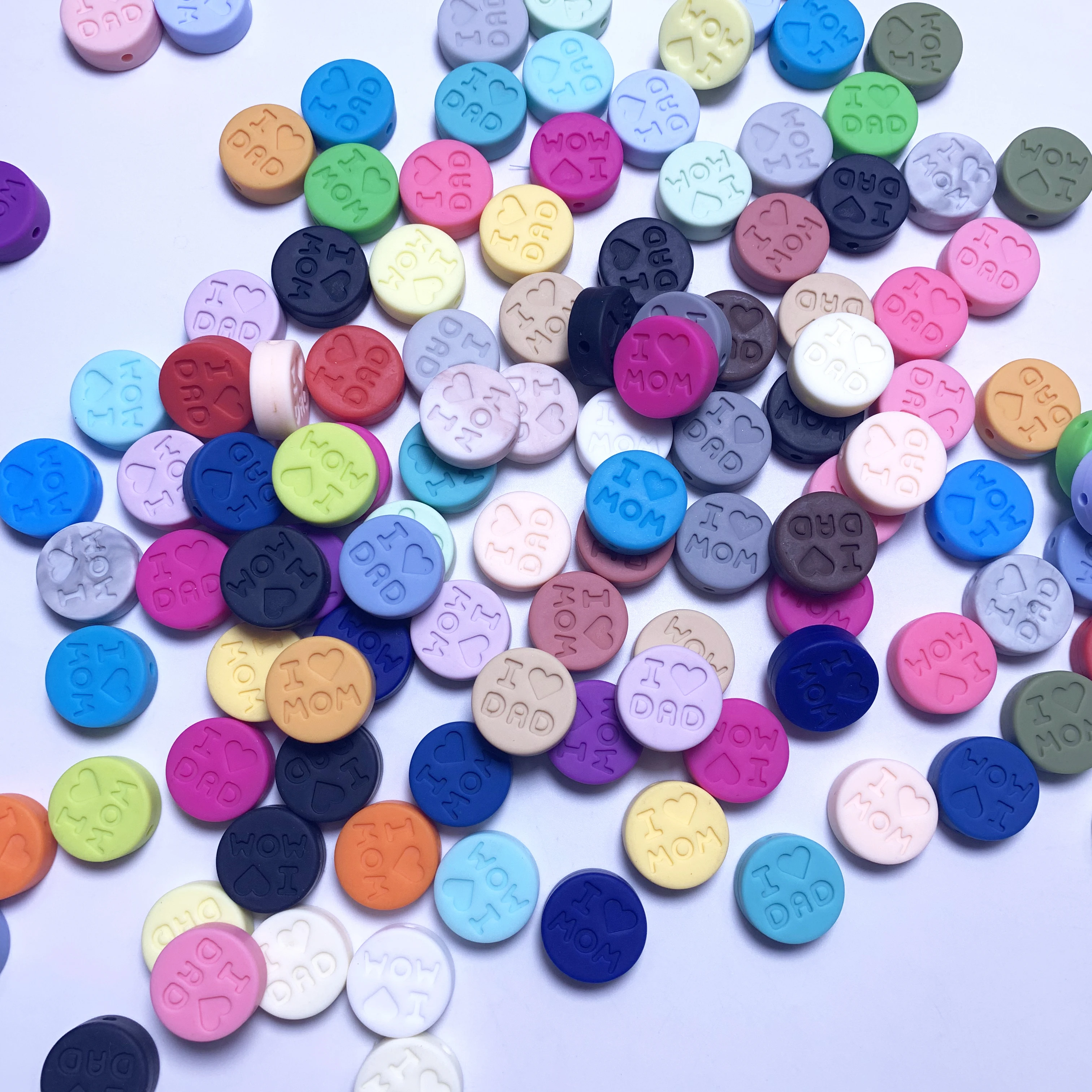 Силиконовые бусины Я люблю папу, мама, 18 мм, 200 шт., бусины сделай сам, ювелирные изделия, ожерелье, браслет, искусственный силиконовый детский Прорезыватель для зубов