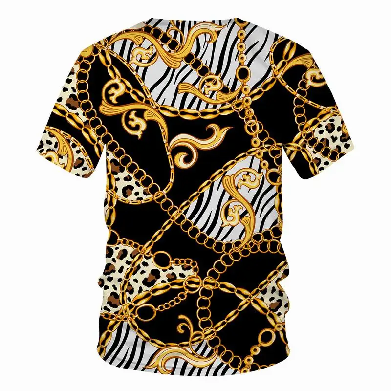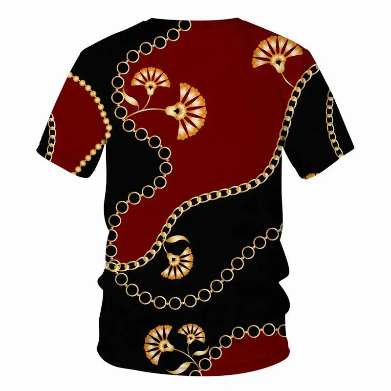 Футболка мужская с коротким рукавом, брендовая тенниска с 3D-принтом золотых цепочек в стиле барокко, роскошная одежда в Королевском Стиле, Топы И Футболки в стиле хип-хоп, лето 2019
