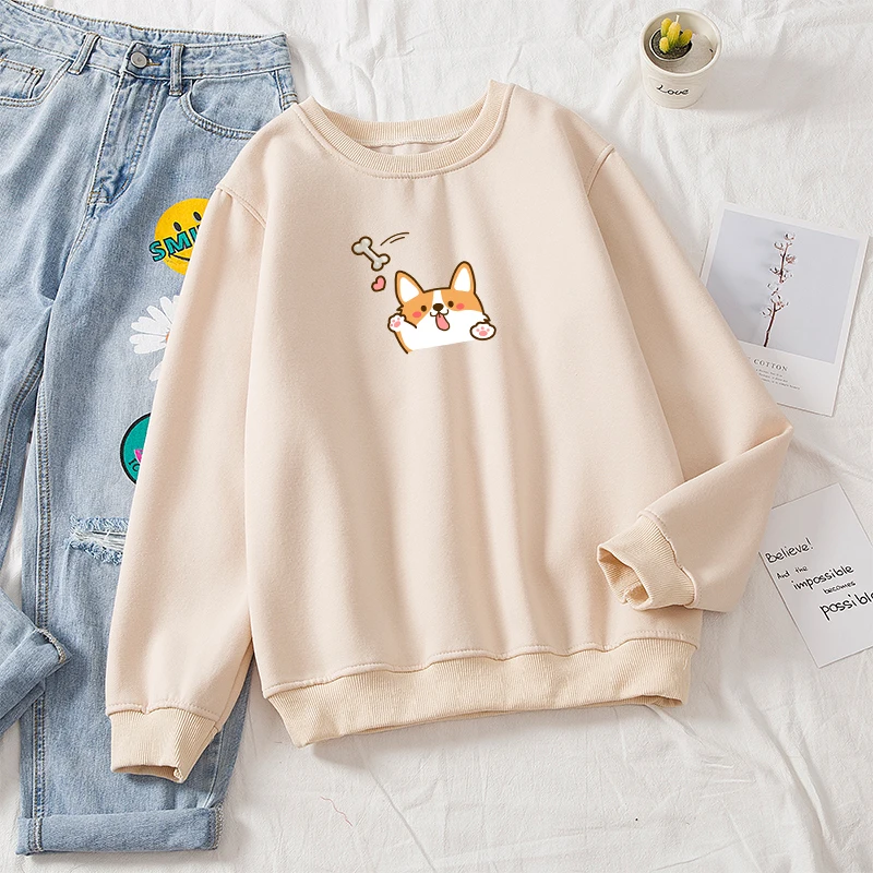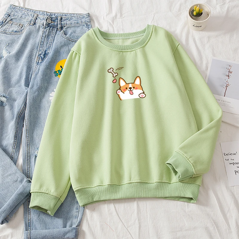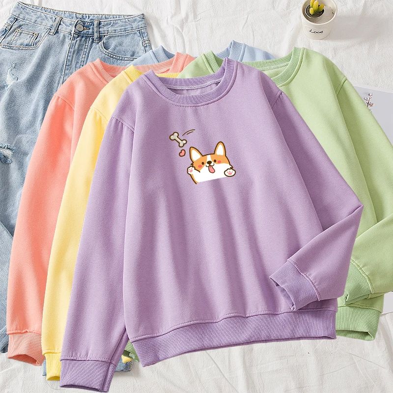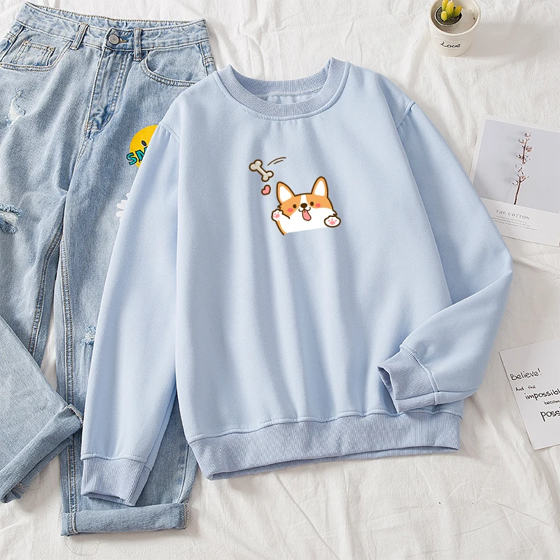 Толстовка Женская хлопковая, с принтом в виде собаки корги