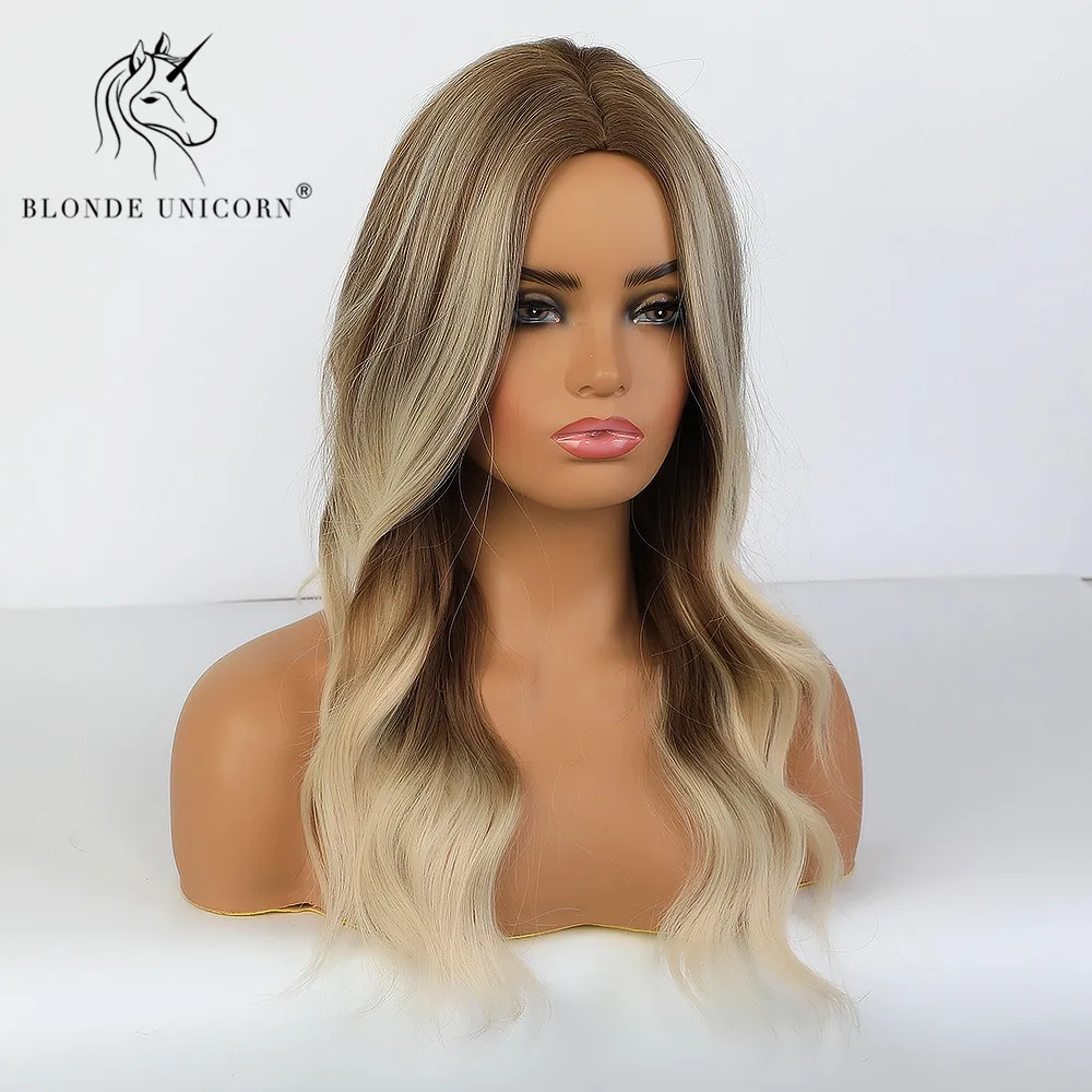 Блонд Единорог синтетический парик длинные волнистые Омбре коричнев...