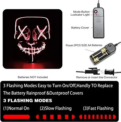 Добро пожаловать в наш магазин.Если вам нравятся наши товары, вы можете заказать их!Мы предоставим Вам товары и услуги хорошего качества.Если у вас возникли проблемы, свяжитесь со мной, спасибо!Описание товара:1 посылка: маски * 1 контроллер * 1 (не входят в комплект) 2 * батарейки АА2. Цвет: много цветов3. Есть 4 режима управления: Стабильный светильник, медленная вспышка, быстрая вспышка, ВЫКЛ.4. Эта маска изготовлена из высококачественного ПВХ и El холодного светильник, без УФ-повреждений, без побочных эффектов на организм человека.5. Прикрепите зажим для шнура питания к карману или одежде.6. Маски можно использовать по любому случаю, например, на вечеринках, рейв-вечеринках, дискотеках, клубах, днях рождения, фестивалях и мероприятиях.Пожалуйста, обратите внимание:1. Возможны отклонения в 1-3 см из-за ручного измерения и 3-5 г из-за разницы между цветами.2. Из-за разницы в мониторах цвет может немного отличаться от ожидаемого, пожалуйста, учитывайте это.3. Когда вы получите товар и удовлетворены им, пожалуйста, оставьте положительотзывы в и оценку 5. Мы оставим вам отзыв с 5 баллами отзывыЕсли по какой-либо причине вы не удовлетворены своей покупкой, пожалуйста, свяжитесь с нами через aliexpress, и мы сделаем все возможное, чтобы решить эту проблему. Пожалуйста, не оставляйте нейтральный или отрицательный отзыв, не связавшись с нами. Спасибо!