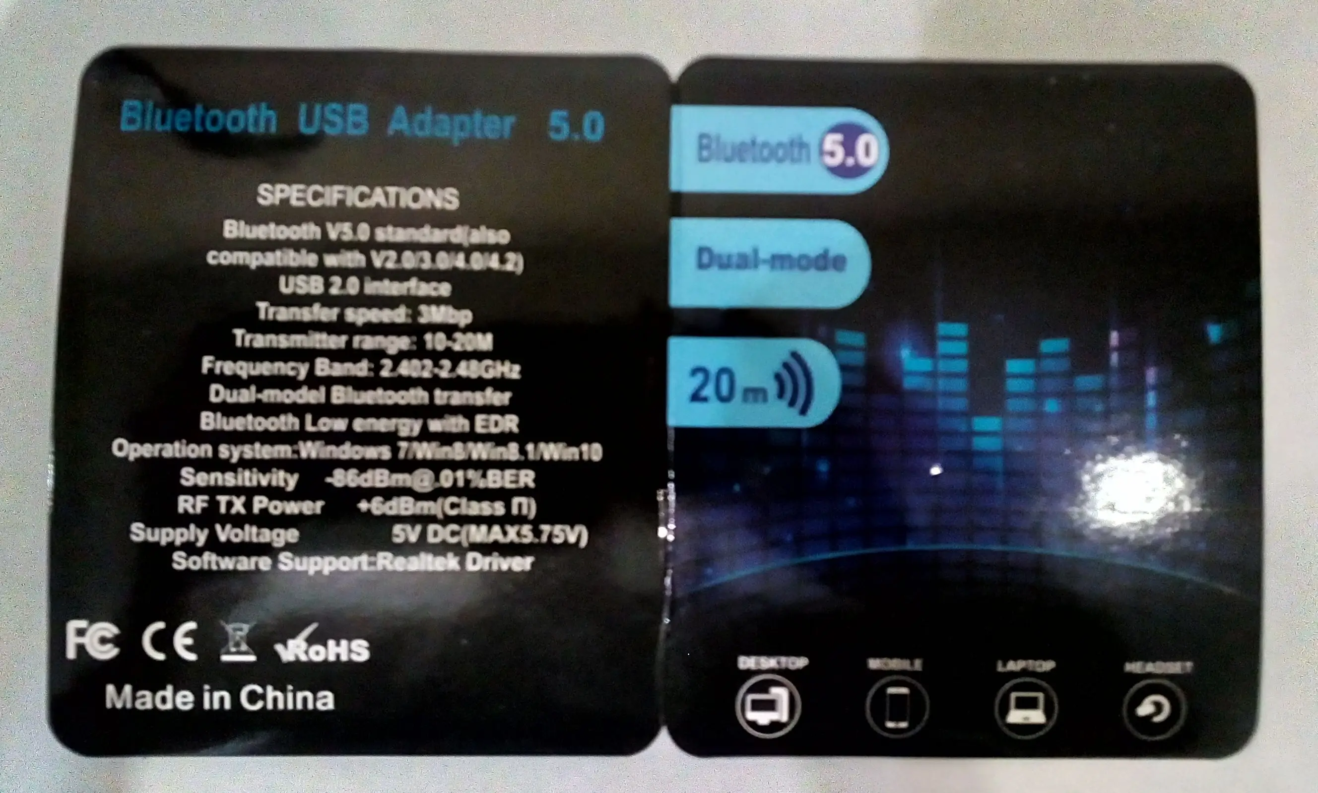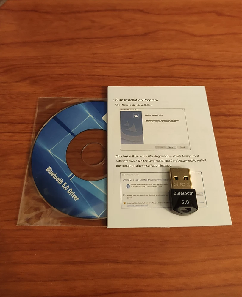 Посылка шла 2 месяца. Уже связывался с продавцом, получил предложение быть терпеливым. Ок. Прибор работает нормально, проверить версию блютуз и наличие aptx пока не могу. Насчет драйверов (CD-rom в 2021 - смешная опция, конечно). Продавец какой-то нерасторопный, надоело ждать пока он пришлет ссылку на драйвера, сам нашел решение (может, кому пригодится): ищем драйвера по названию чипсета (RTL8761B), скачиваем родной риалтековский установщик, ставим, всё работает.