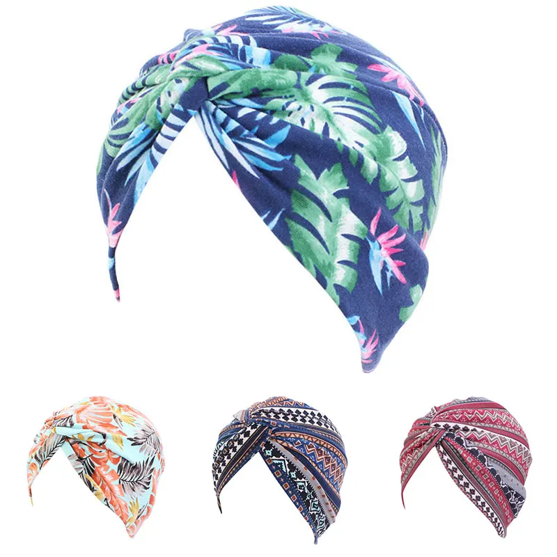 Женская мусульманская Эластичный Тюрбан Бейсболка Свободного Покроя Цветочный принт головной обруч колпачки Мягкий Складной аксессуары для волос для девушек аксессуар Turbantes