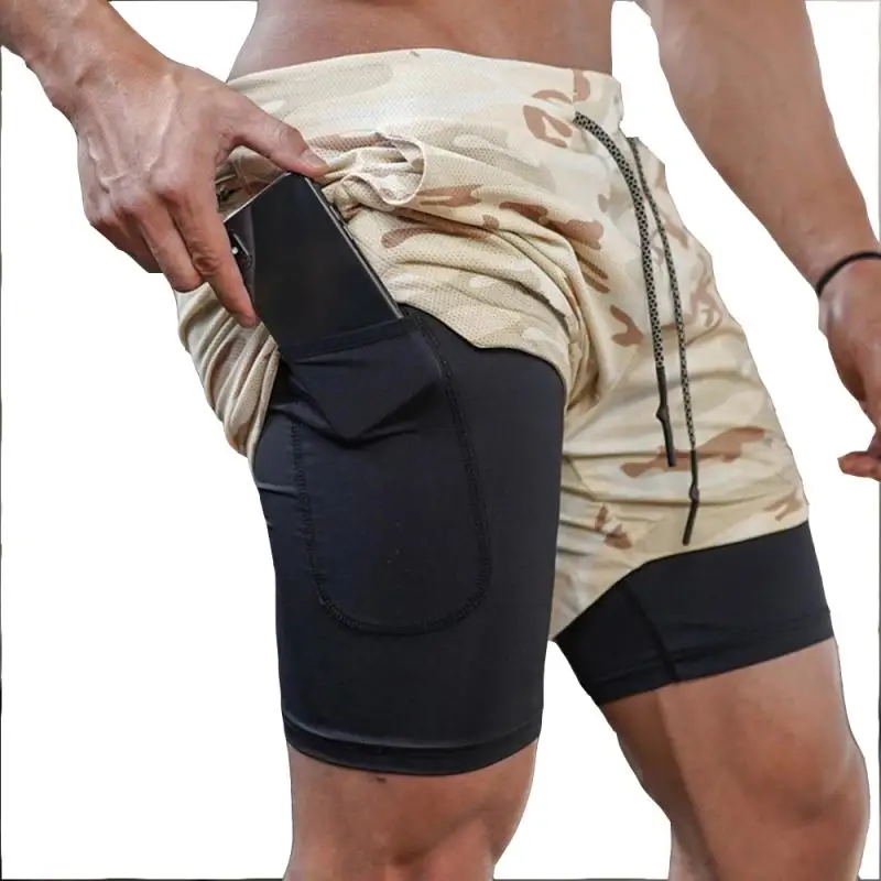 Мужские повседневные шорты 2 в 1, быстросохнущие спортивные шорты для бега, фитнеса, бодибилдинга, тренировок, с встроенными карманами, шорты для спортзала