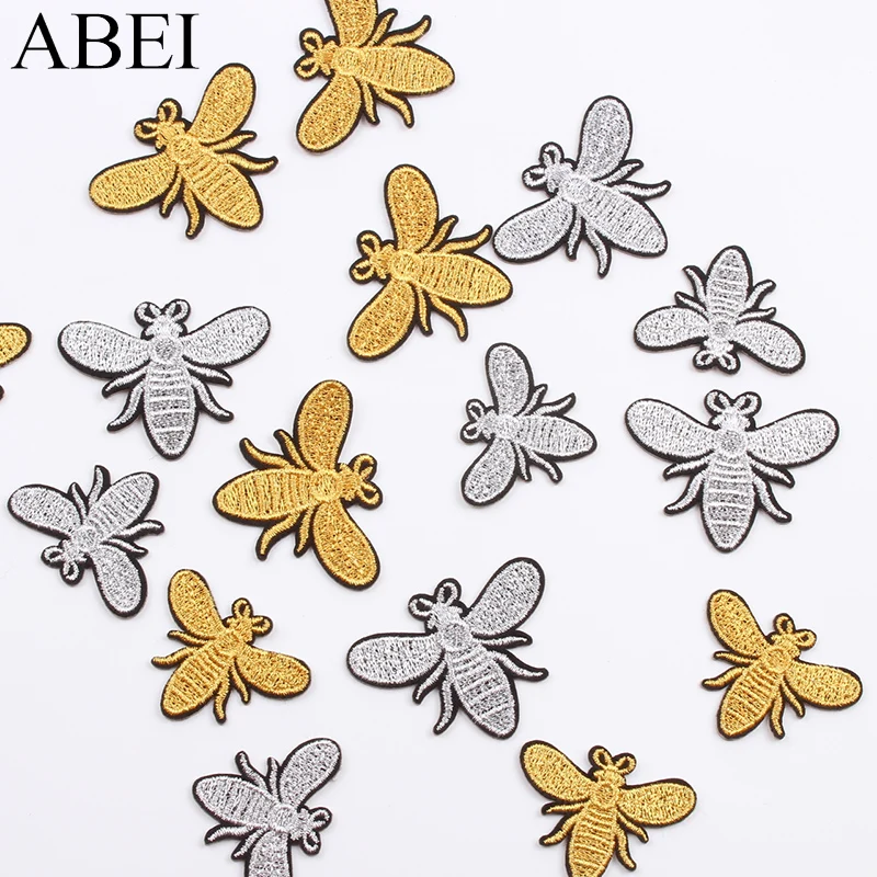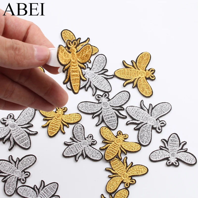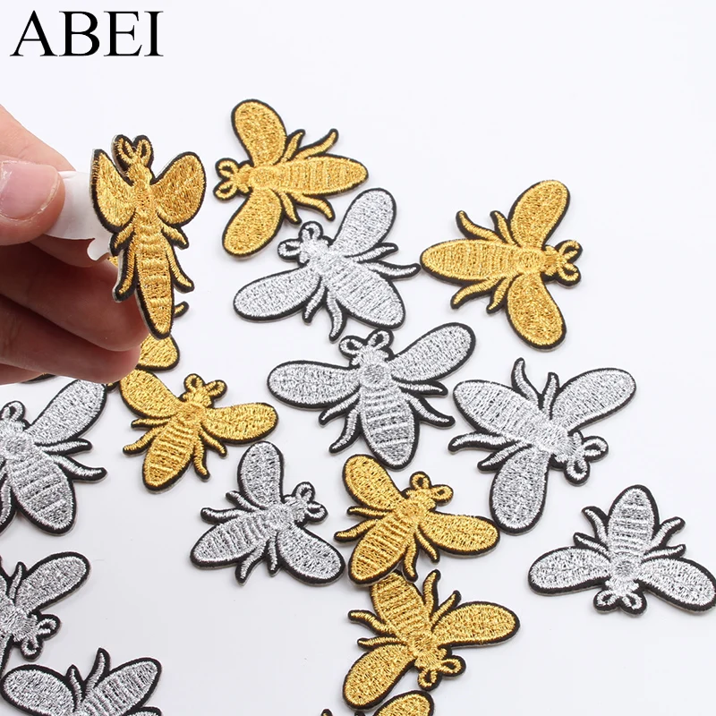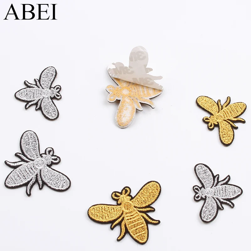 10 шт самоклеящаяся Вышивка Золотая Серебряная пчела