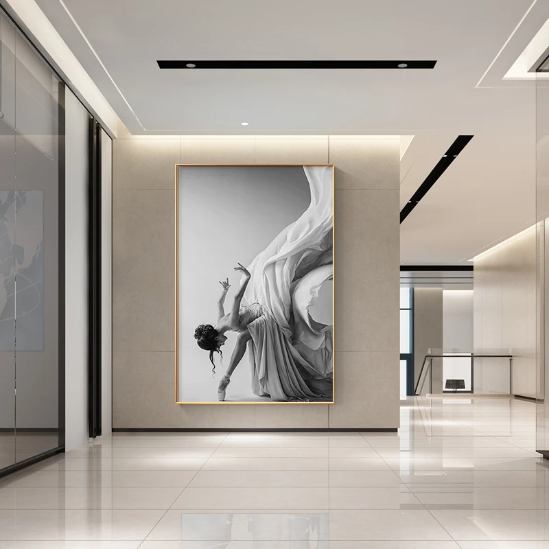 Современная Картина на холсте с изображением танцующей девушки балерины, плакат и печать, рисунок на стене, черные и белые картины для гостиной, спальни, коридора