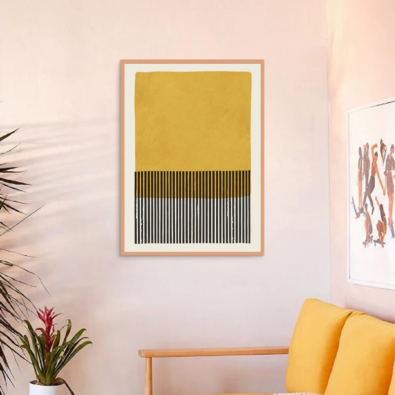Настенные картины в полоску, минималистский постер печать на холсте, цвета горчичного, серого и черного цветов, декор для гостиной